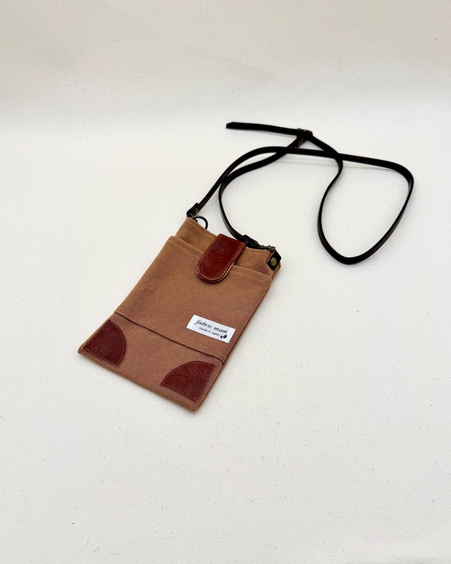 帆布×本革スマホポシェット(ショルダータイプ)ダークベージュ