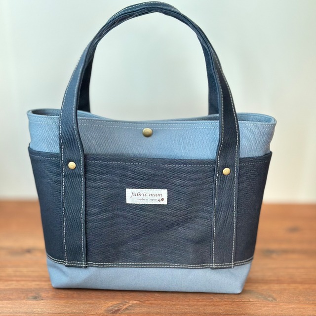 しっかり帆布のSトート(アッシュグレー×スモーキーブルー)