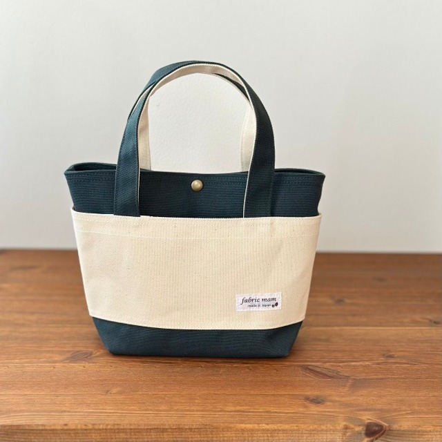 <新作>しっかり帆布のミニトート*ボトルグリーン