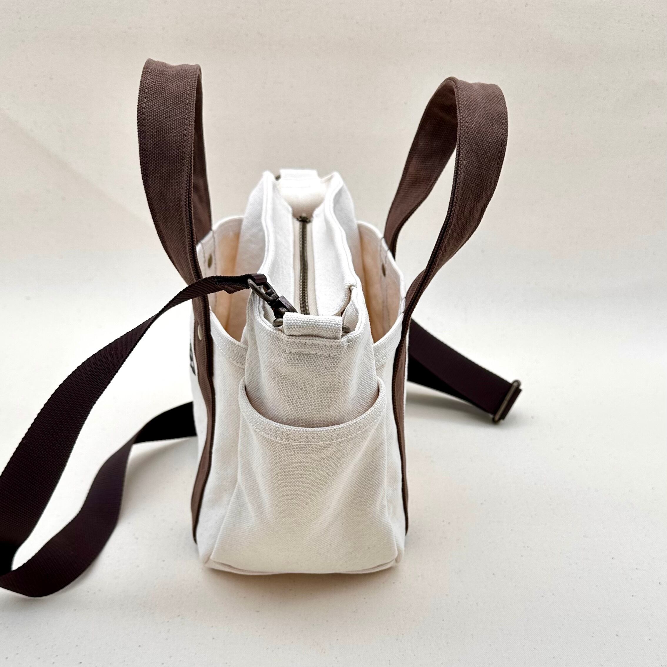 ◆シンプルで使い勝手の良いバイオウオッシュ帆布のショルダーバッグです。生成り色とブラウン持ち手の組み合わせが大人っぽく、落ち着いていながら目を惹く大人可愛いさがあります。帆布素材なので、しっかりとした作りで耐久性も抜群です。幅広で通勤や旅行にも便利です。長さ調節可能なショルダーストラップも付いているので、自分に合った長さで快適に持ち運べます。おしゃれなデザインと実用性を兼ね備えたショルダーバッグで、忙しい日常をサポートします。普段使いにぴったり♪是非、あなたのライフスタイルに合わせてお選びください。