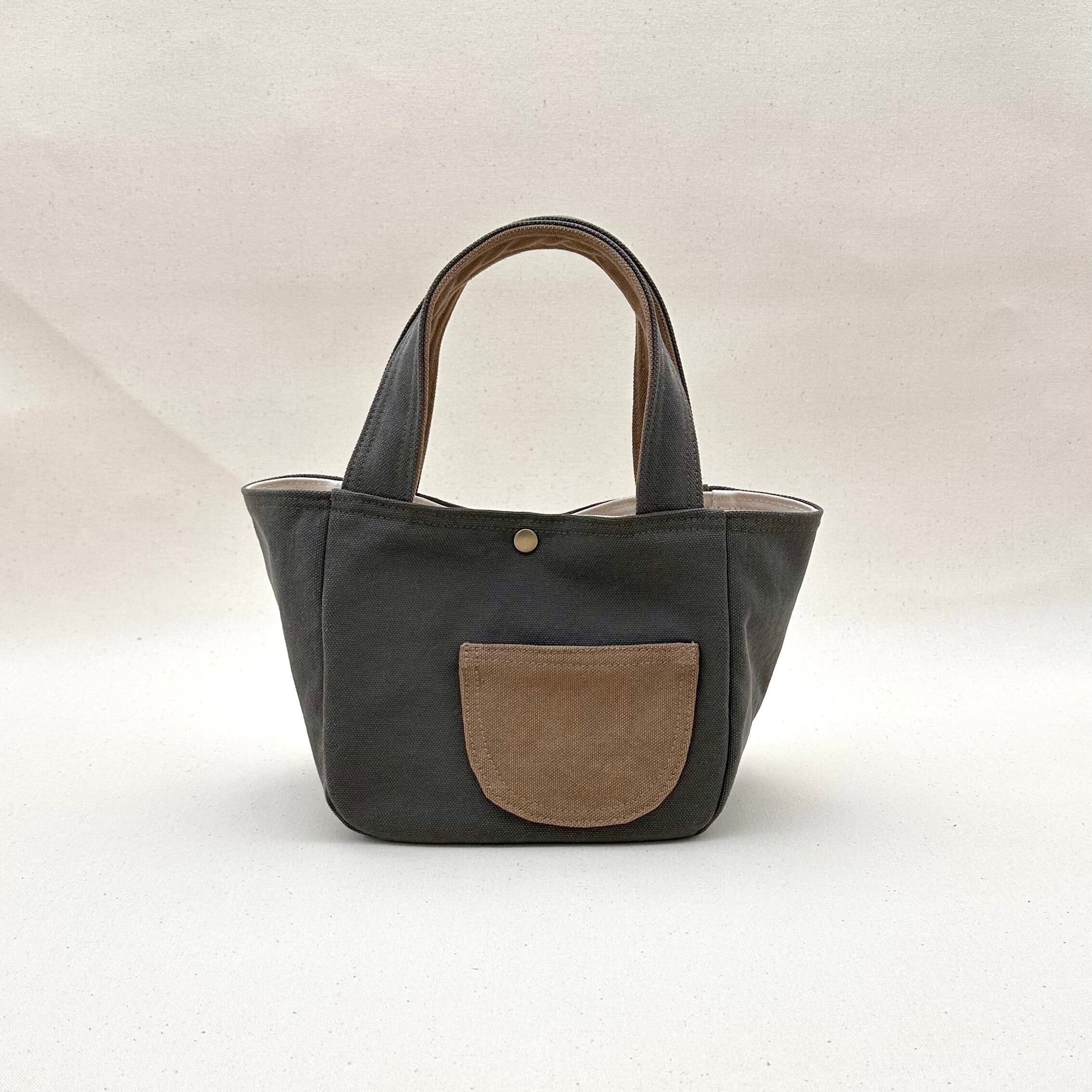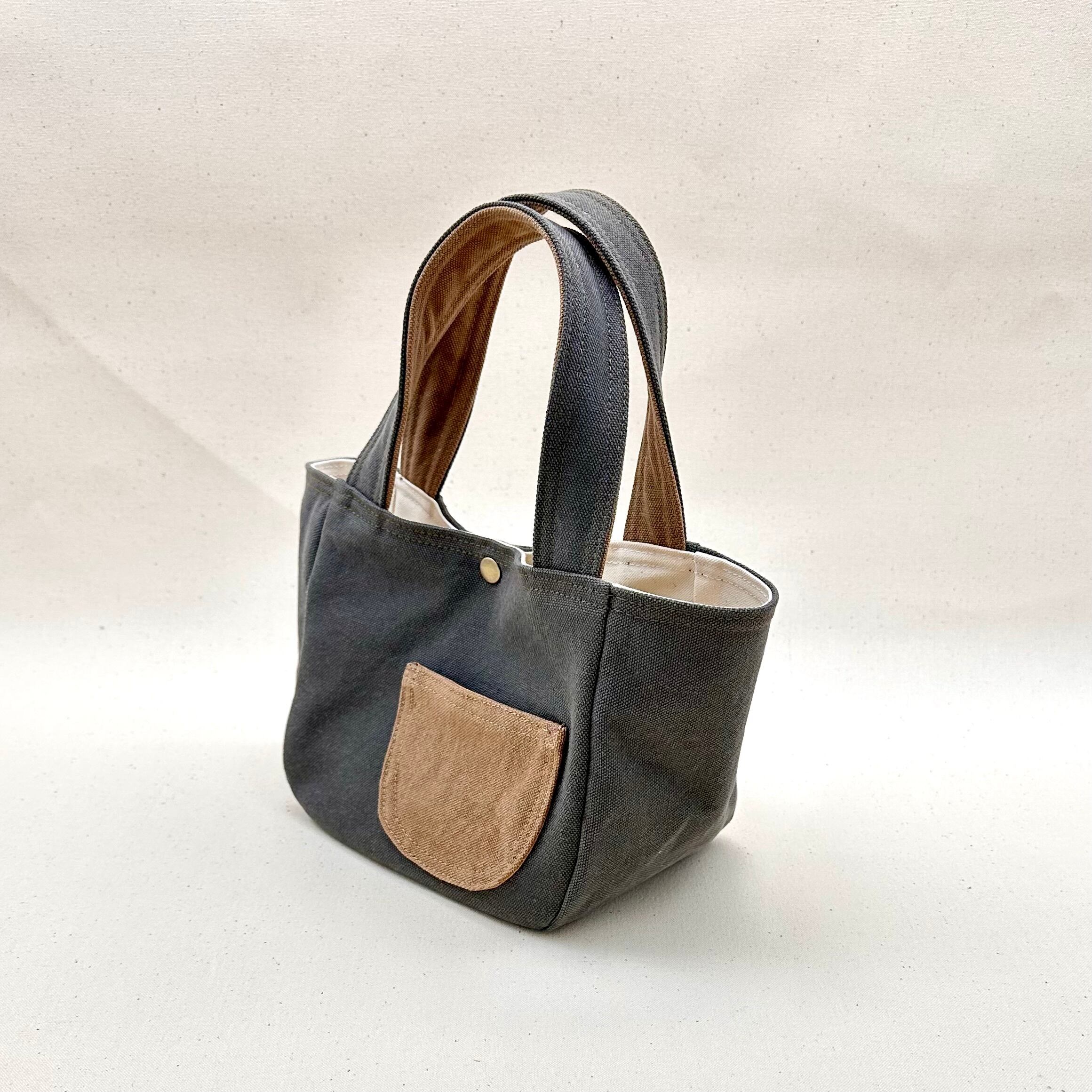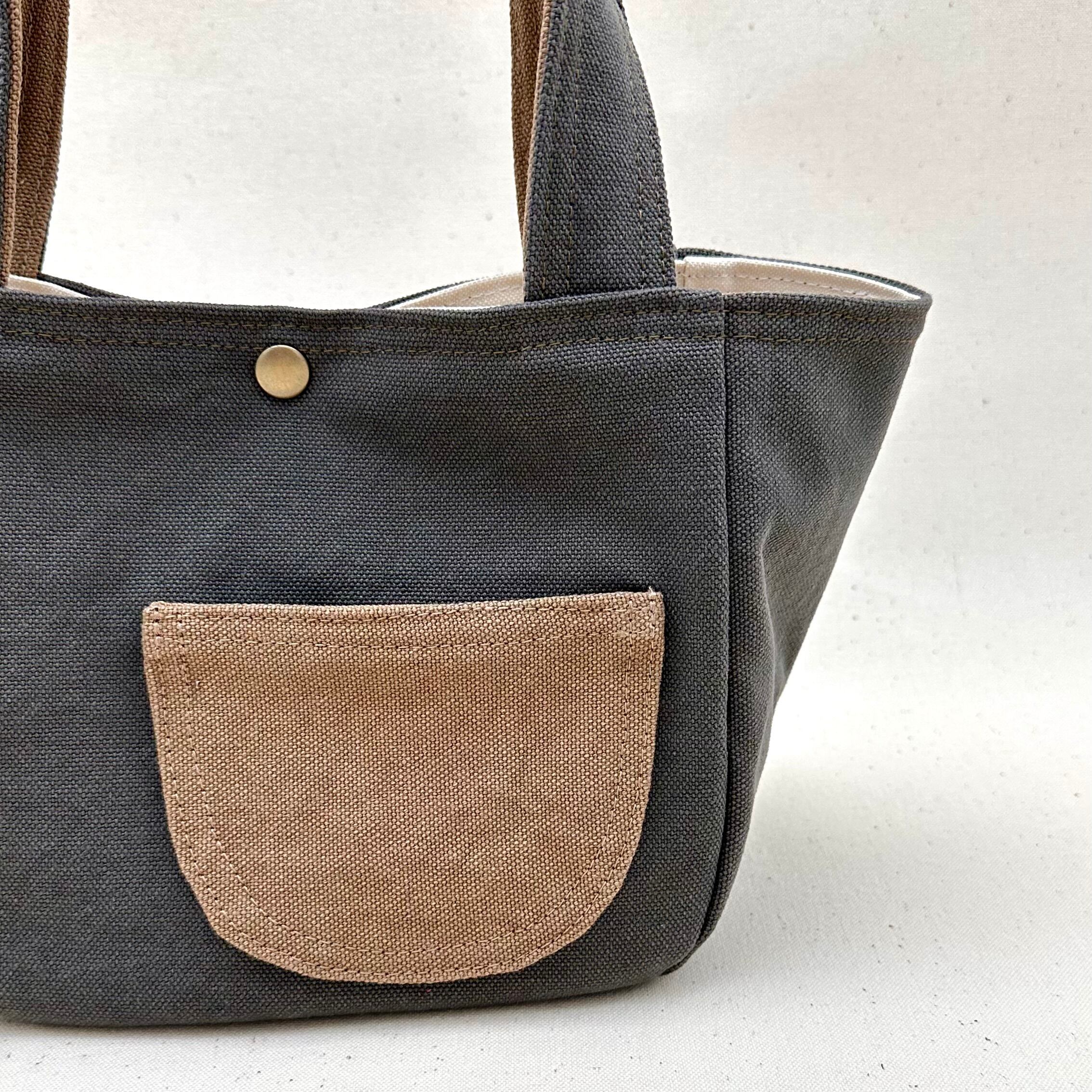 上質な国産倉敷帆布を使用したシンプルなラウンド型ミニサイズトートバッグに可愛いらしいまーるいポケットを添えました。