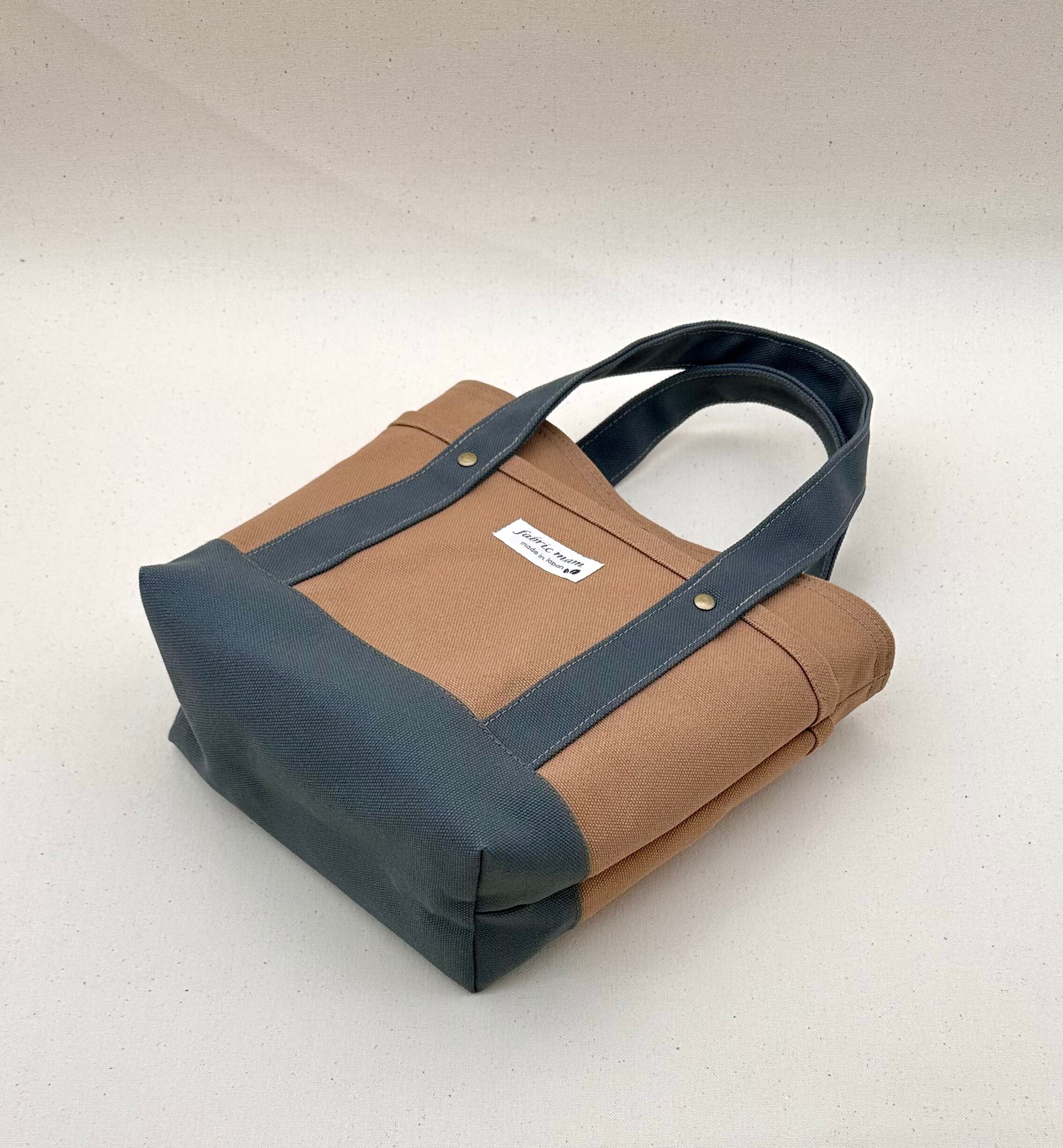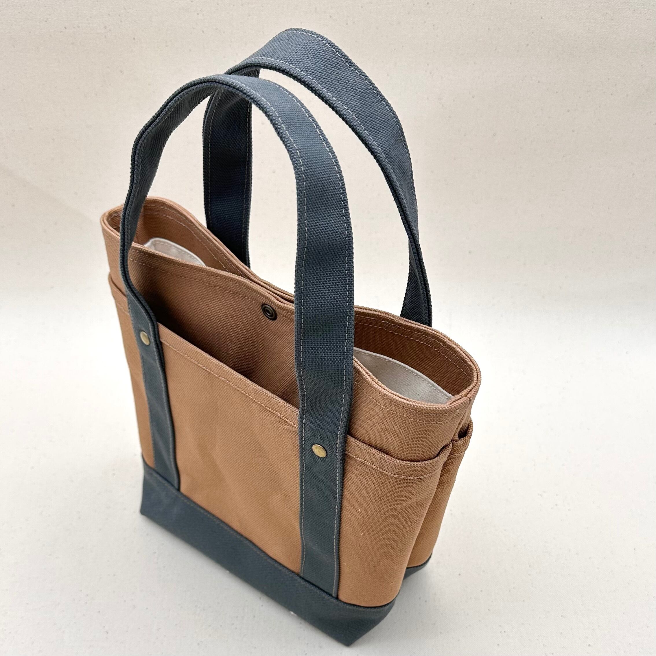 ▢しっかりとした帆布素材を使用したトートバッグが登場しました。ダークベージュカラーがアクセントとなり、コーディネートをさらに華やかに演出してくれます。コンパクトなサイズながら意外にたっぷり収納できるので、デイリー使いはもちろんちょっとしたお出かけ、ご旅行やピクニックなどのアウトドアシーンでも活躍します。