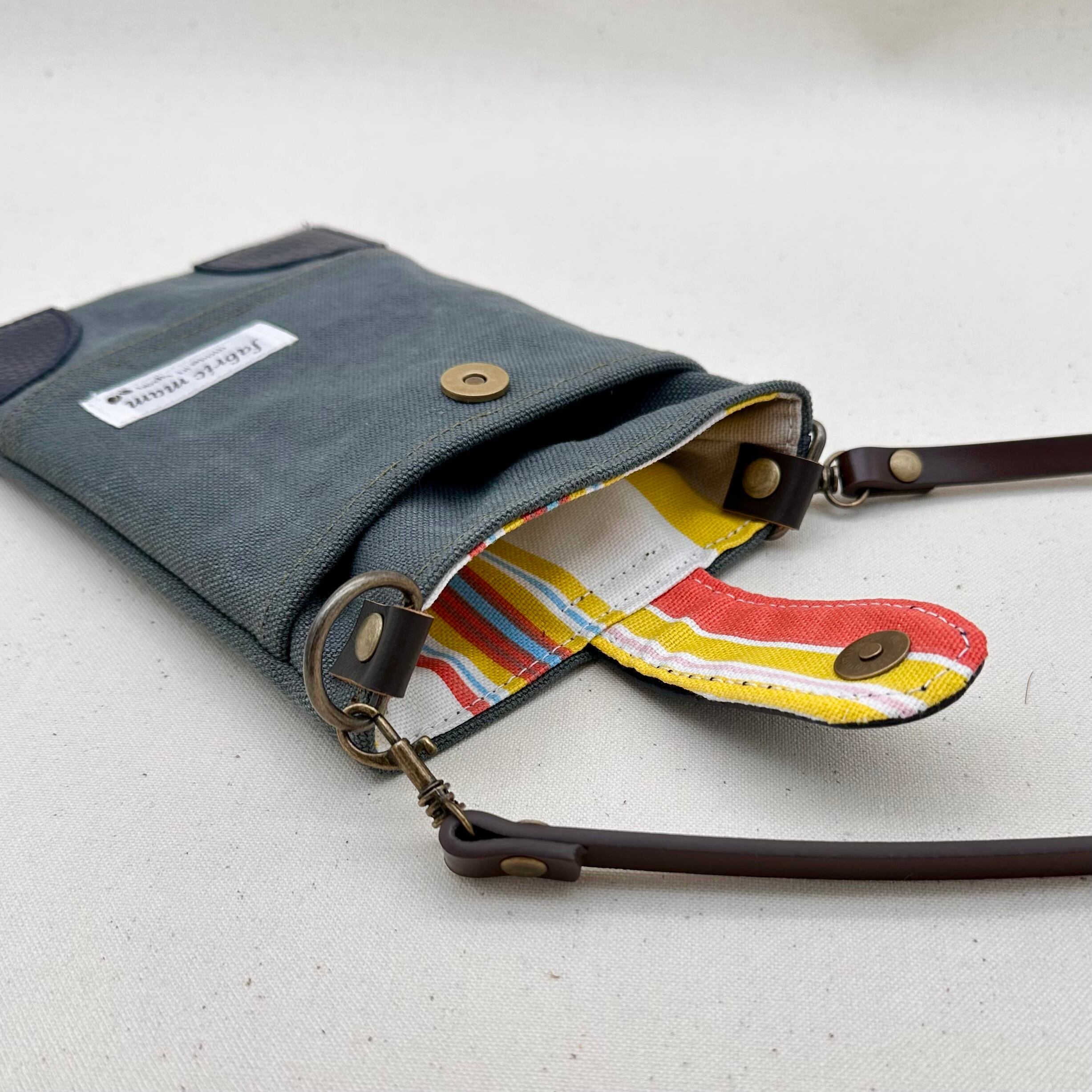 ▢内布あり(フランス直輸入のマルチボーダー生地)、ショルダーは本革を合わせています。