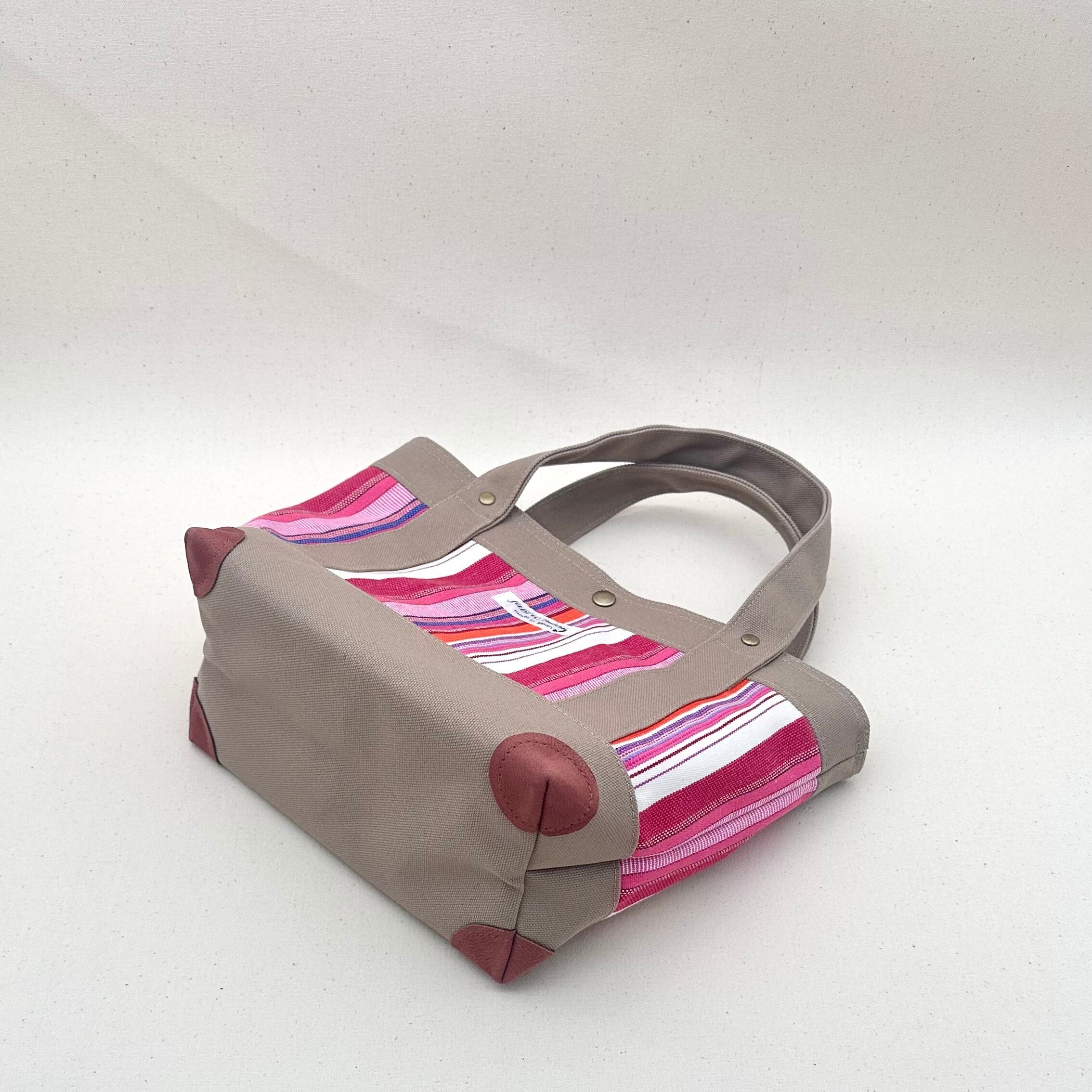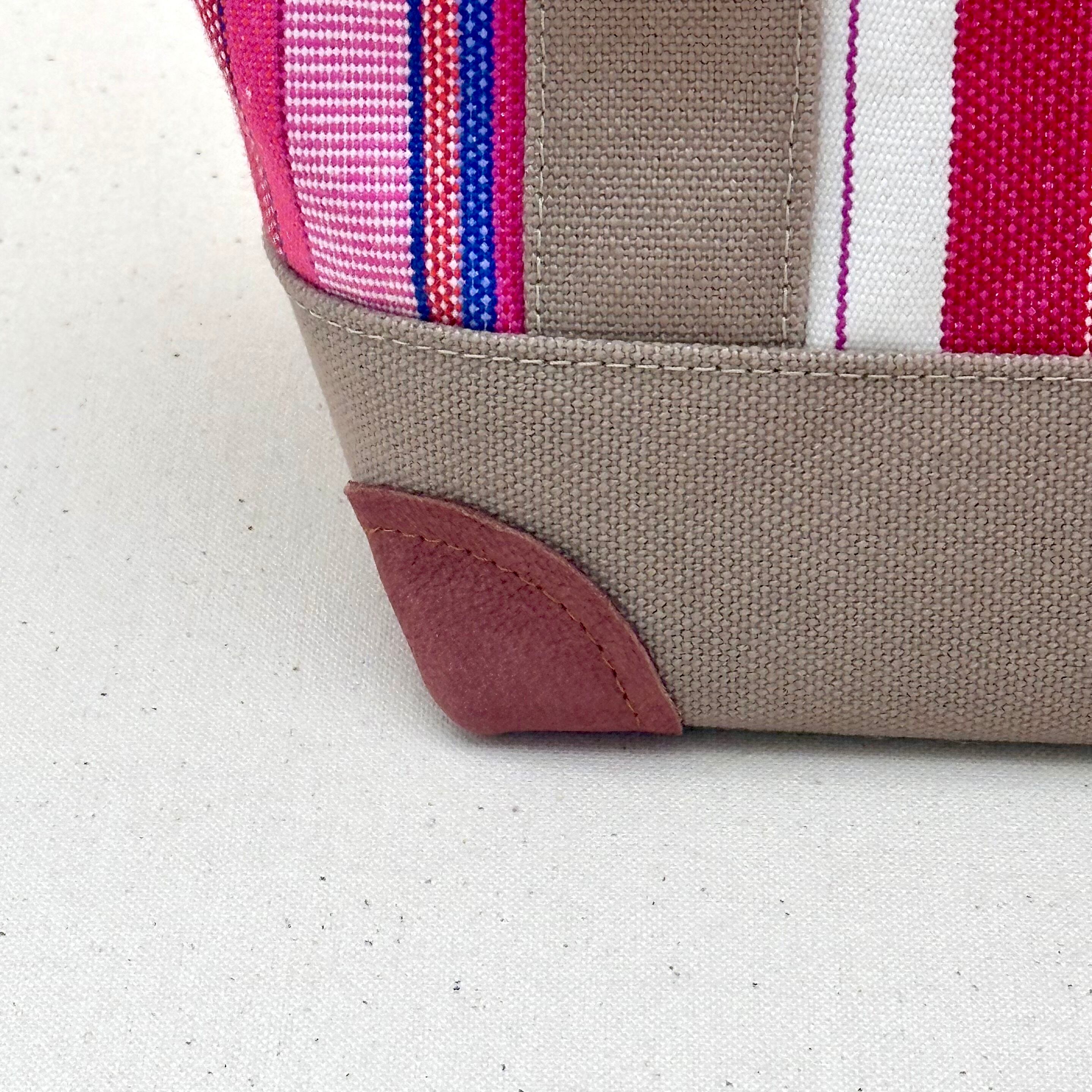 ▢上質な国産・倉敷帆布を使用した、しっかり自立する毎日バッグにちょうどいいサイズのトート。ベースには丈夫な8号帆布(マッシュルーム色)、内布には11号帆布(アイボリー色)を使用。綺麗なストライプも倉敷帆布ならではの風合いで、大人カジュアルながら上品さも。