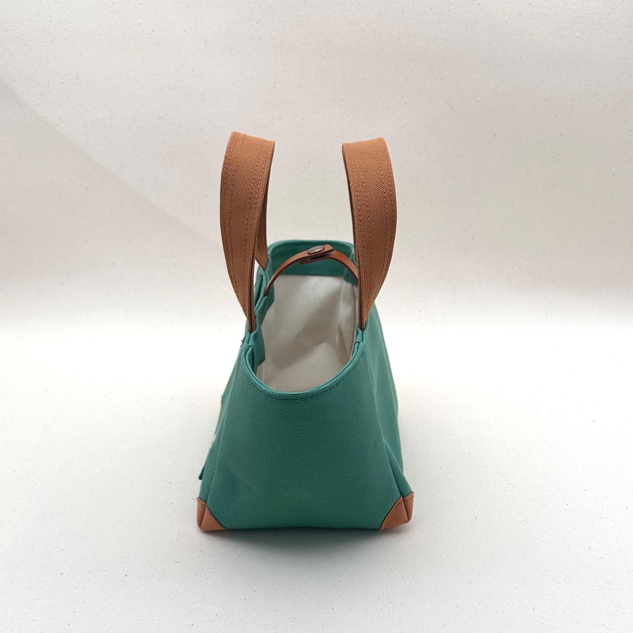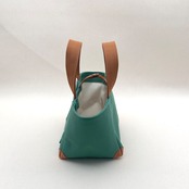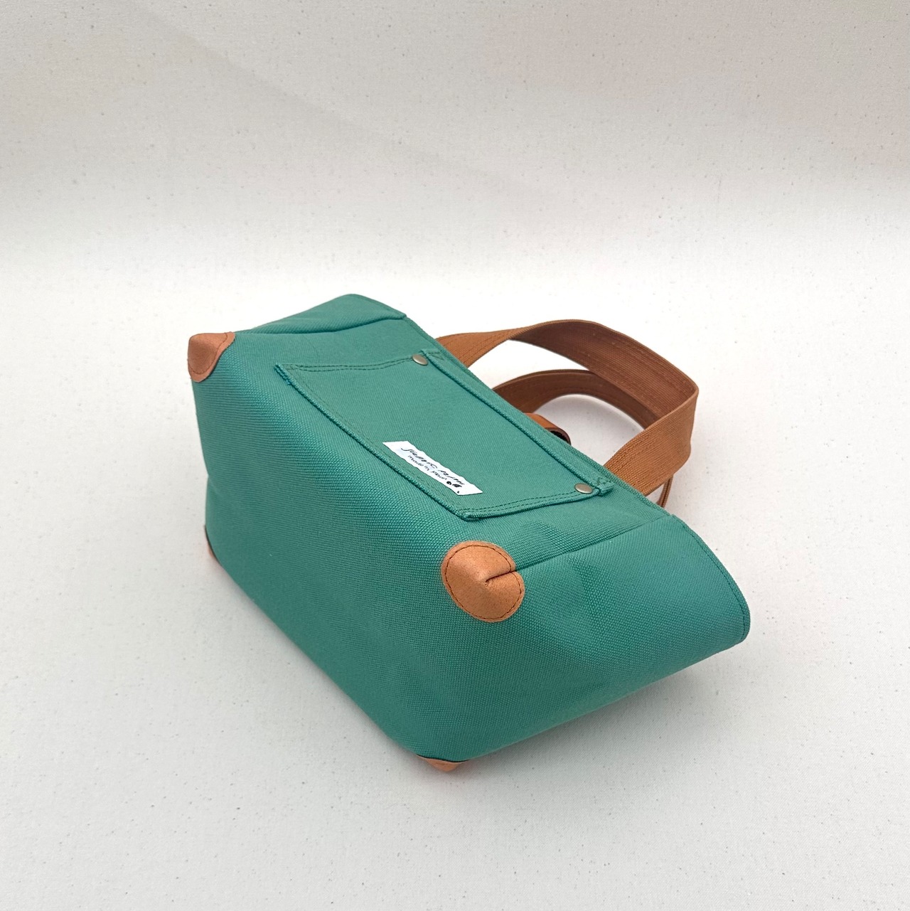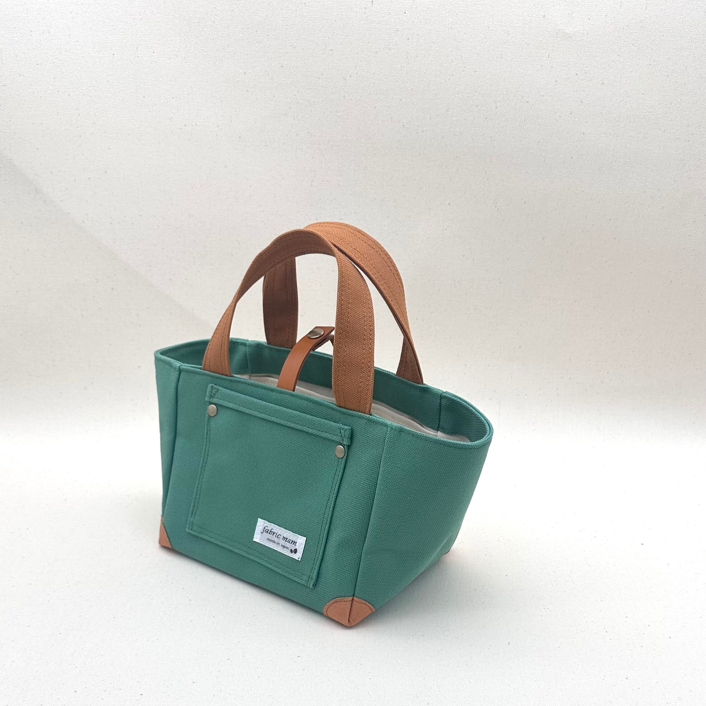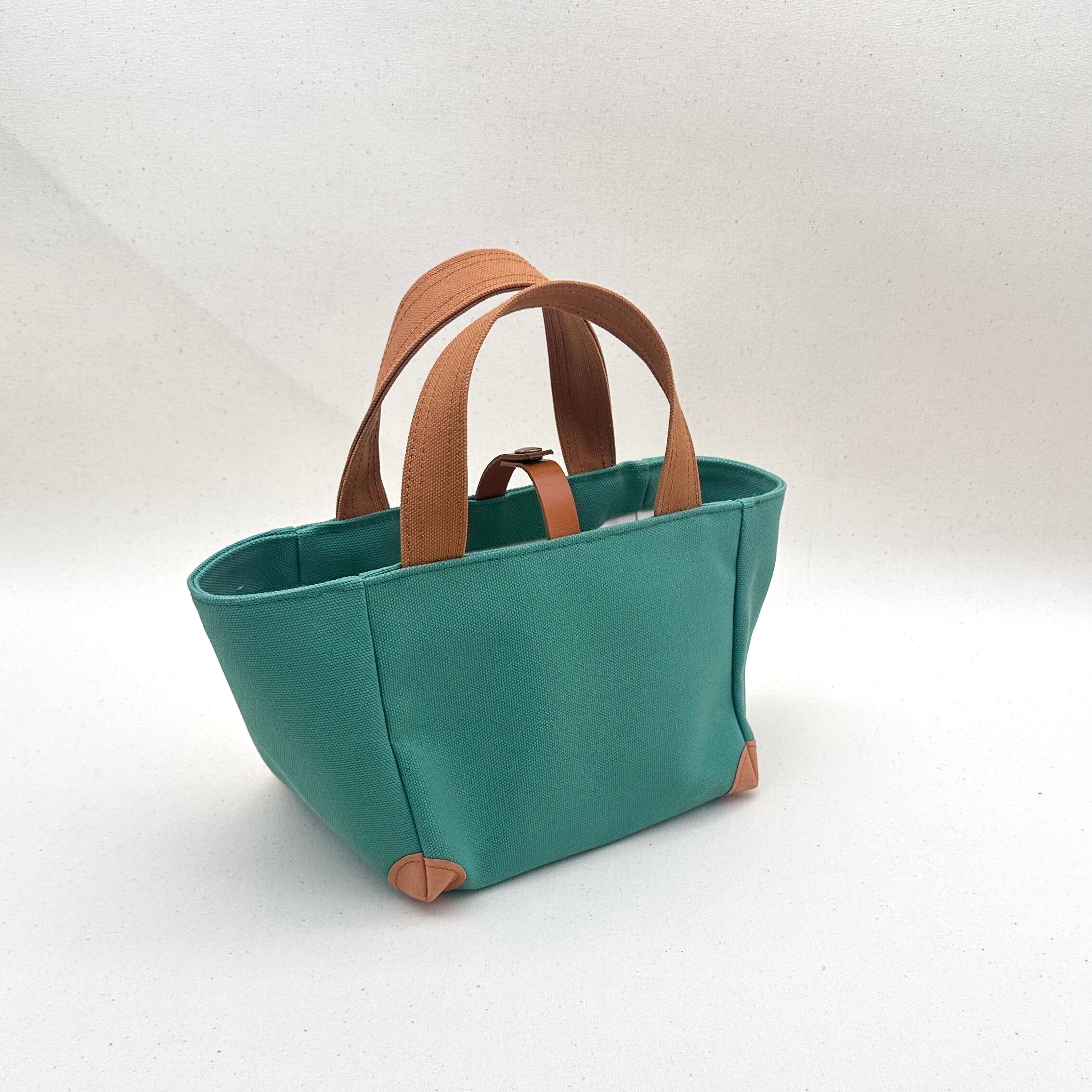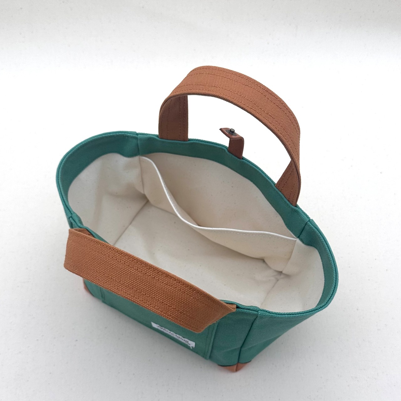 派手すぎないリーフグリーン色に、あたたかなキャメル色の持ち手。