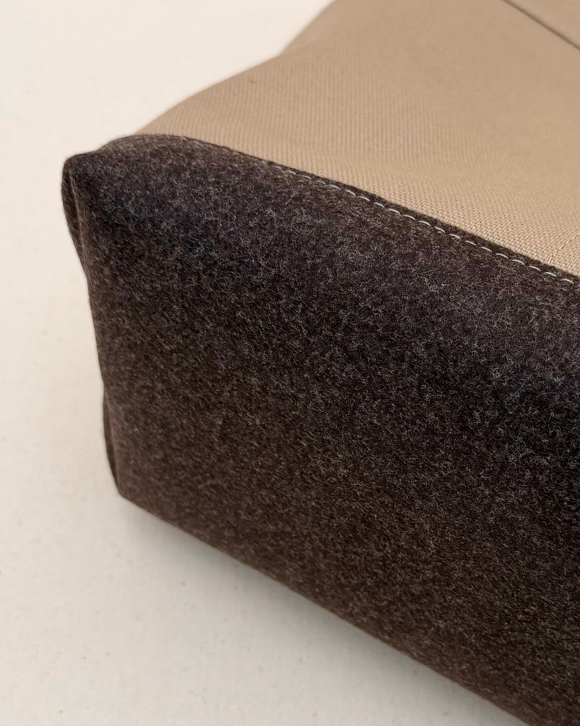 底と持ち手に ブラウン系フェルト生地 を合わせた秋冬限定仕様です。