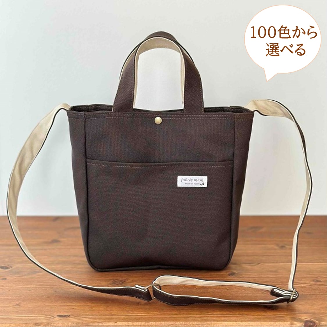共布の持ち手・ショルダー付きで、斜め掛けも可能です。