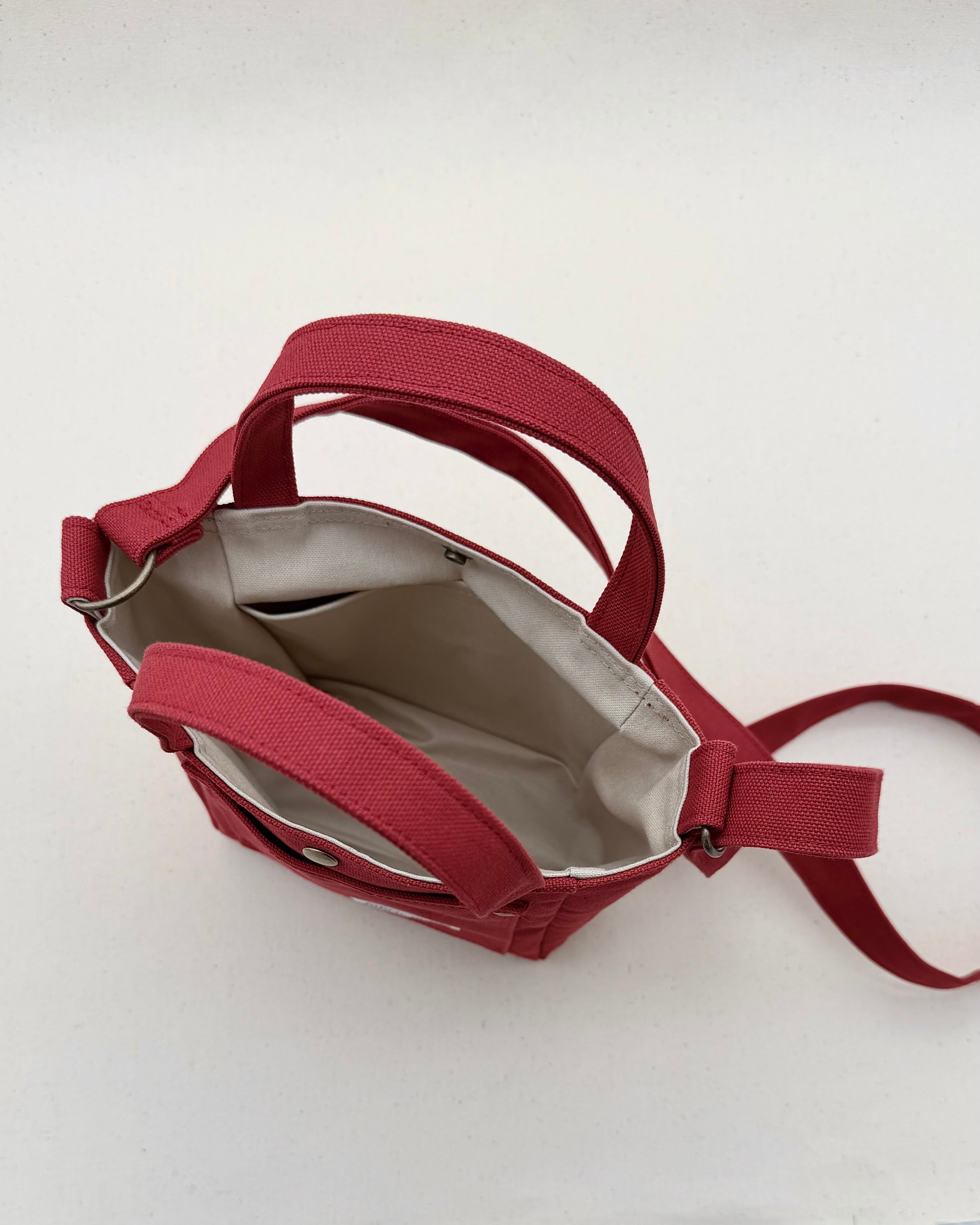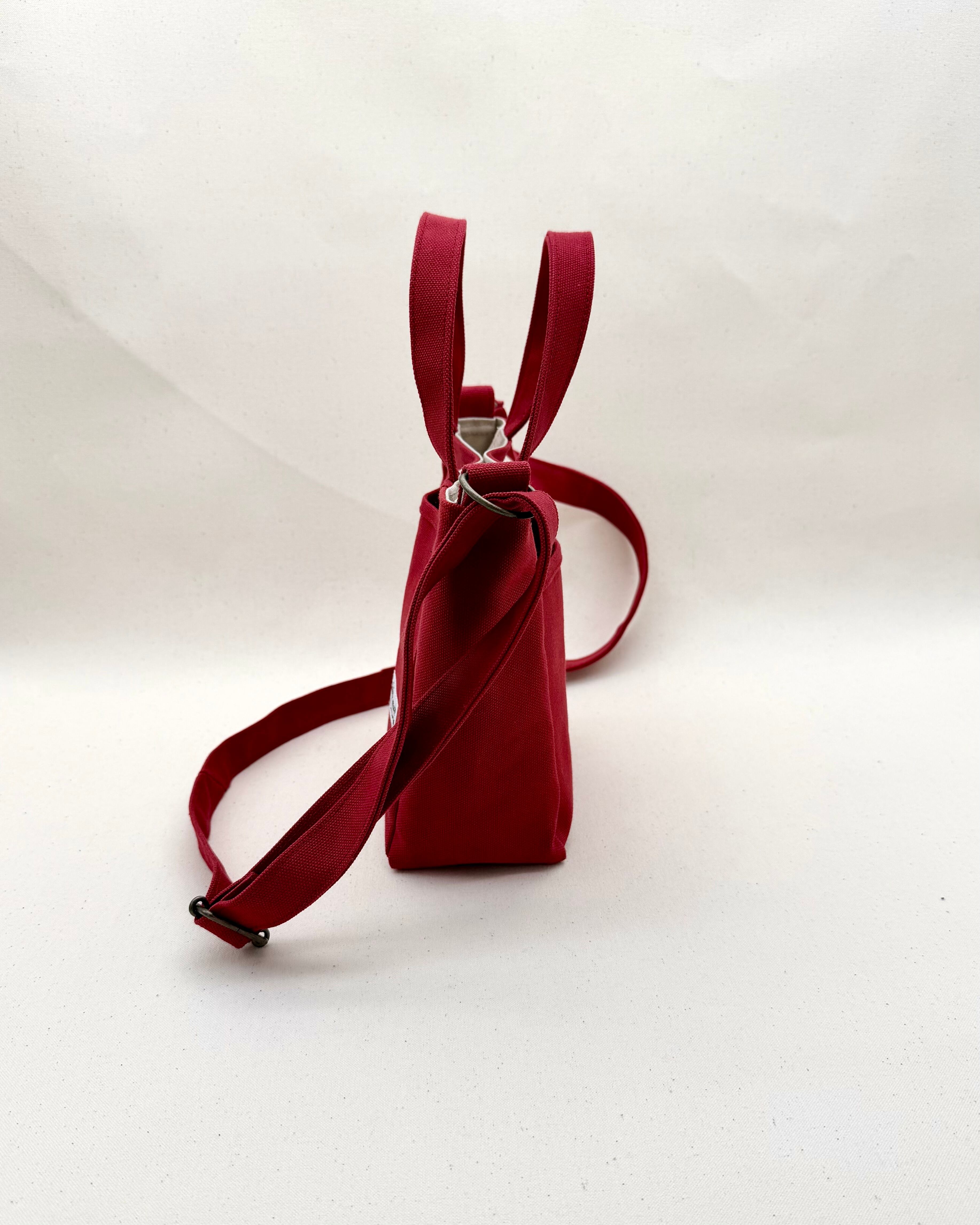帆布 大人のミニショルダー| 長財布も入る 小さめショルダーバッグ / ダークレッド
