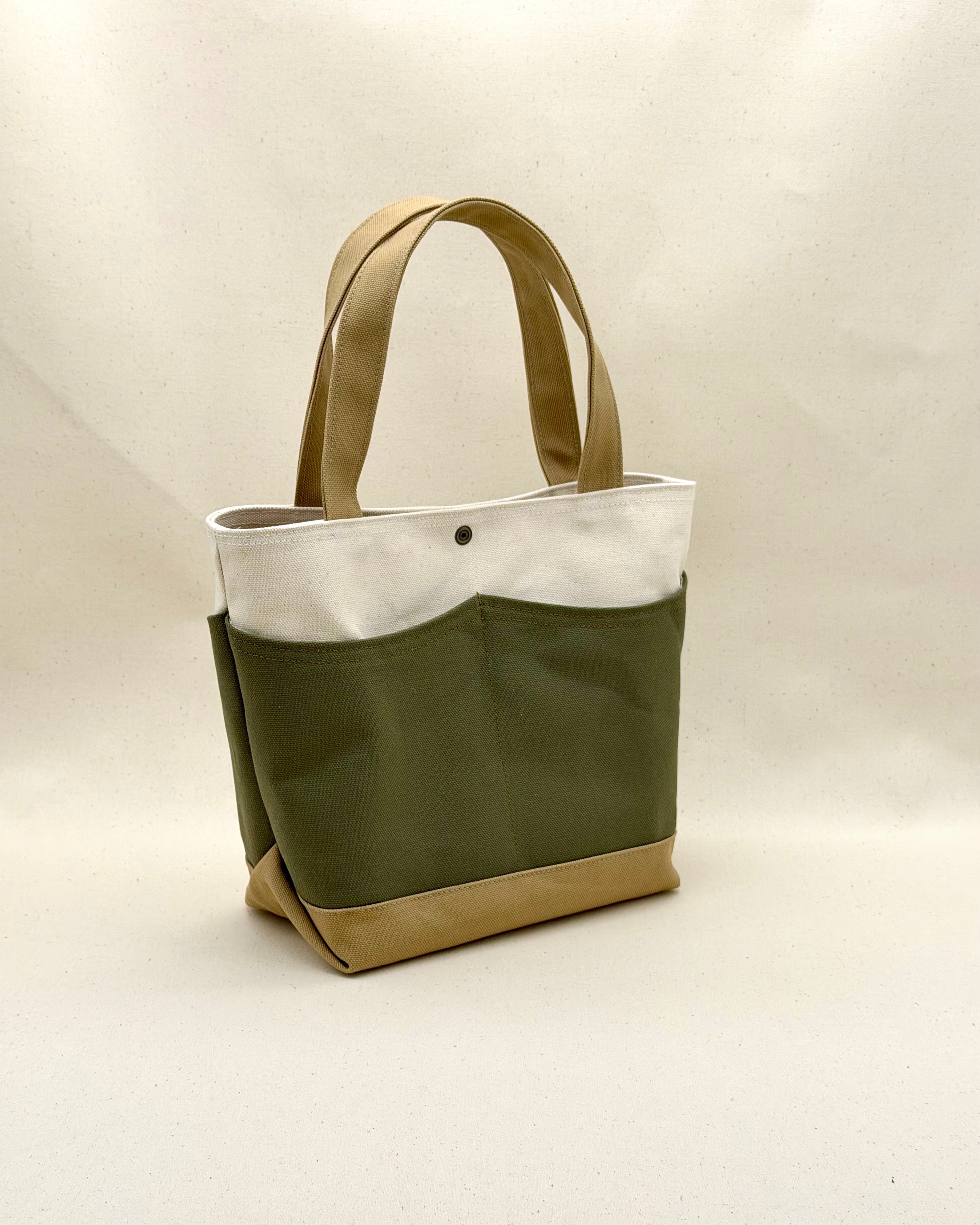 倉敷帆布で仕立てた ウェーブトート ナチュラル配色(生成り×オリーブ)軽い 自立 コンパクト