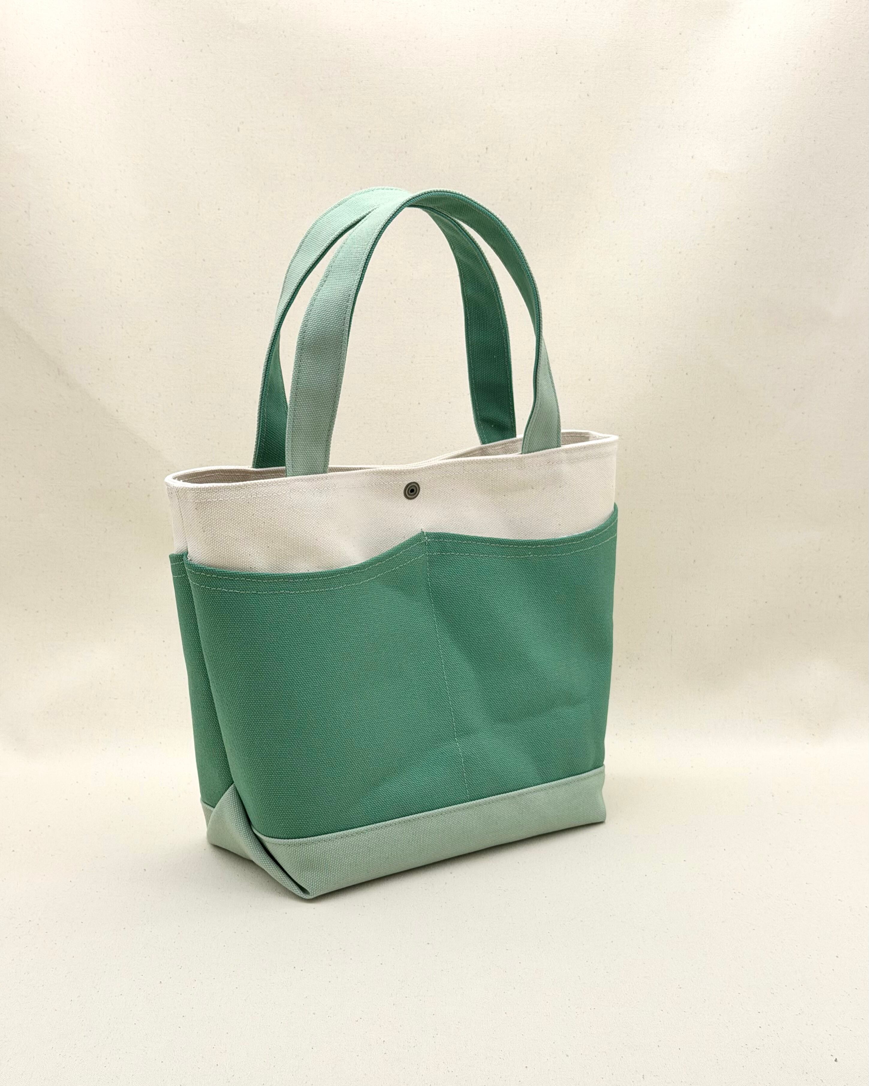 倉敷帆布で仕立てた ウェーブトート ナチュラル配色(生成り×リーフグリーン)軽い 自立 コンパクト