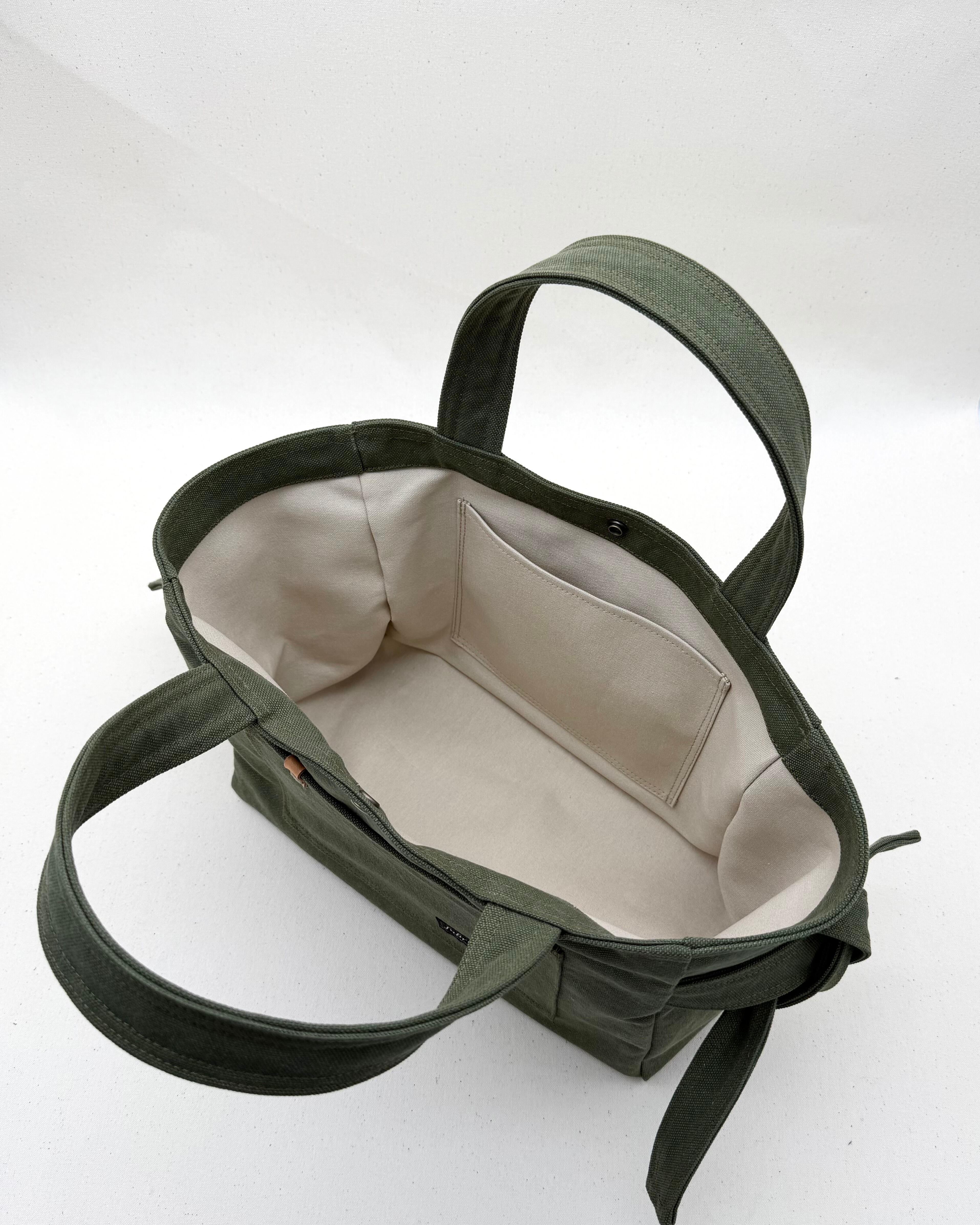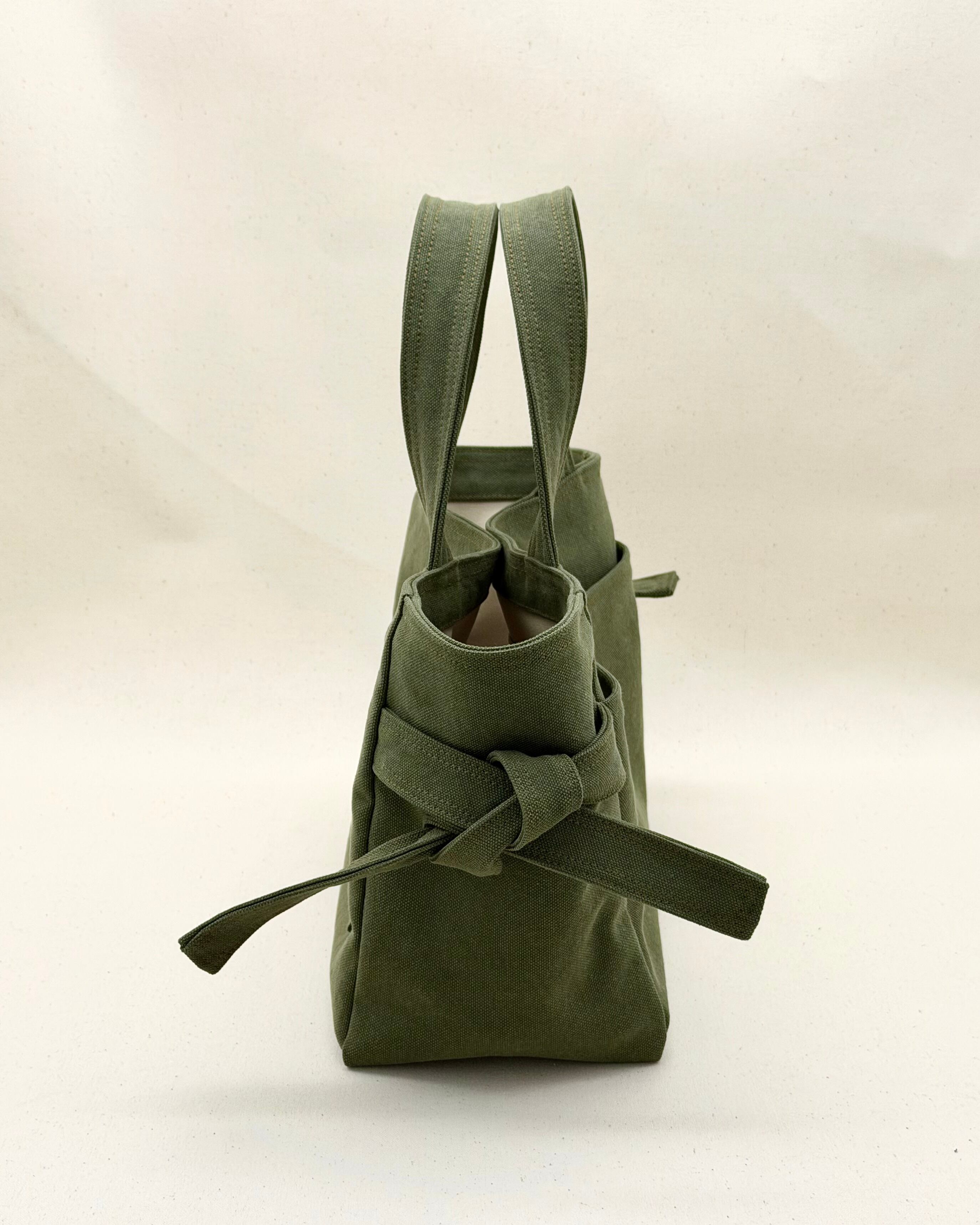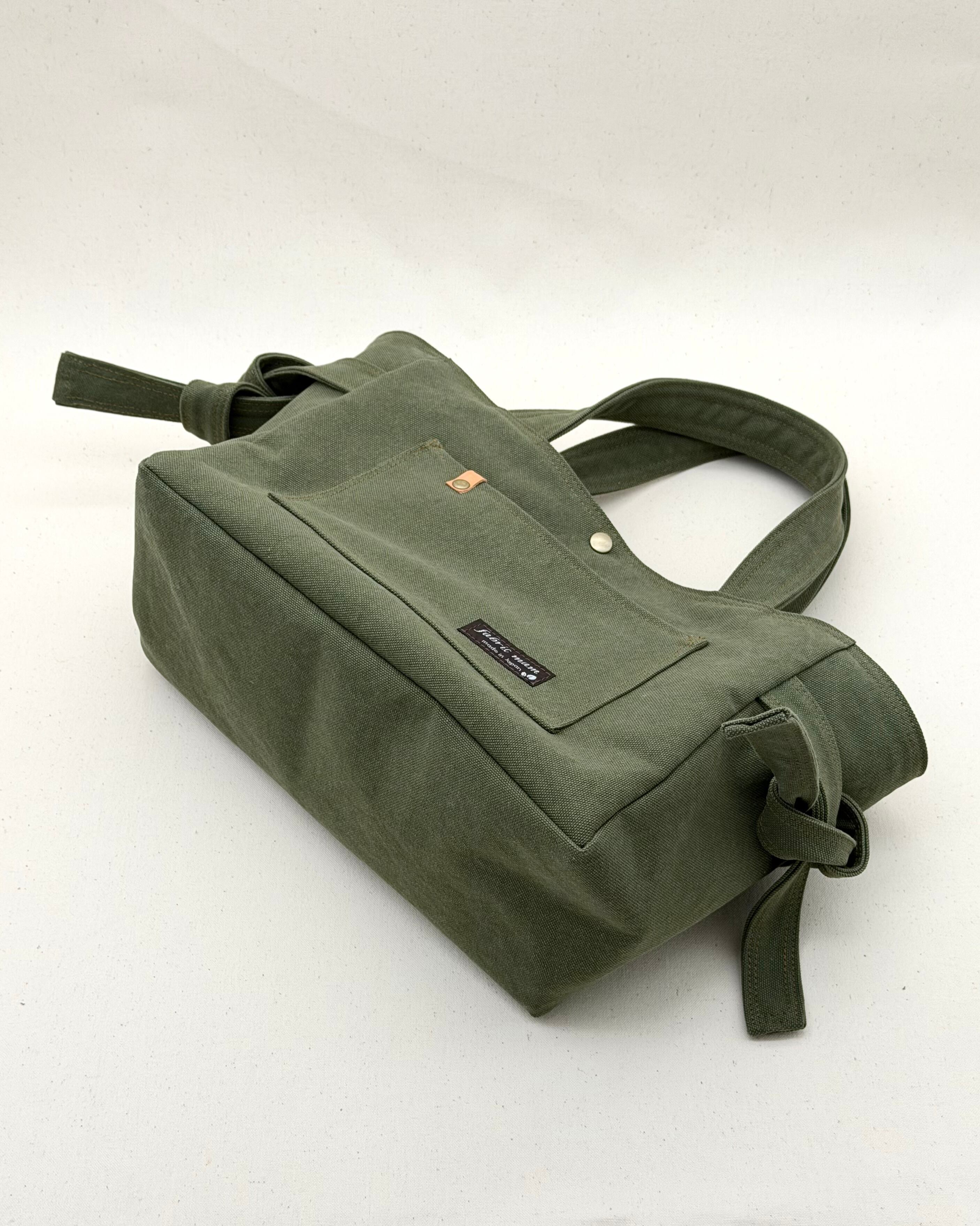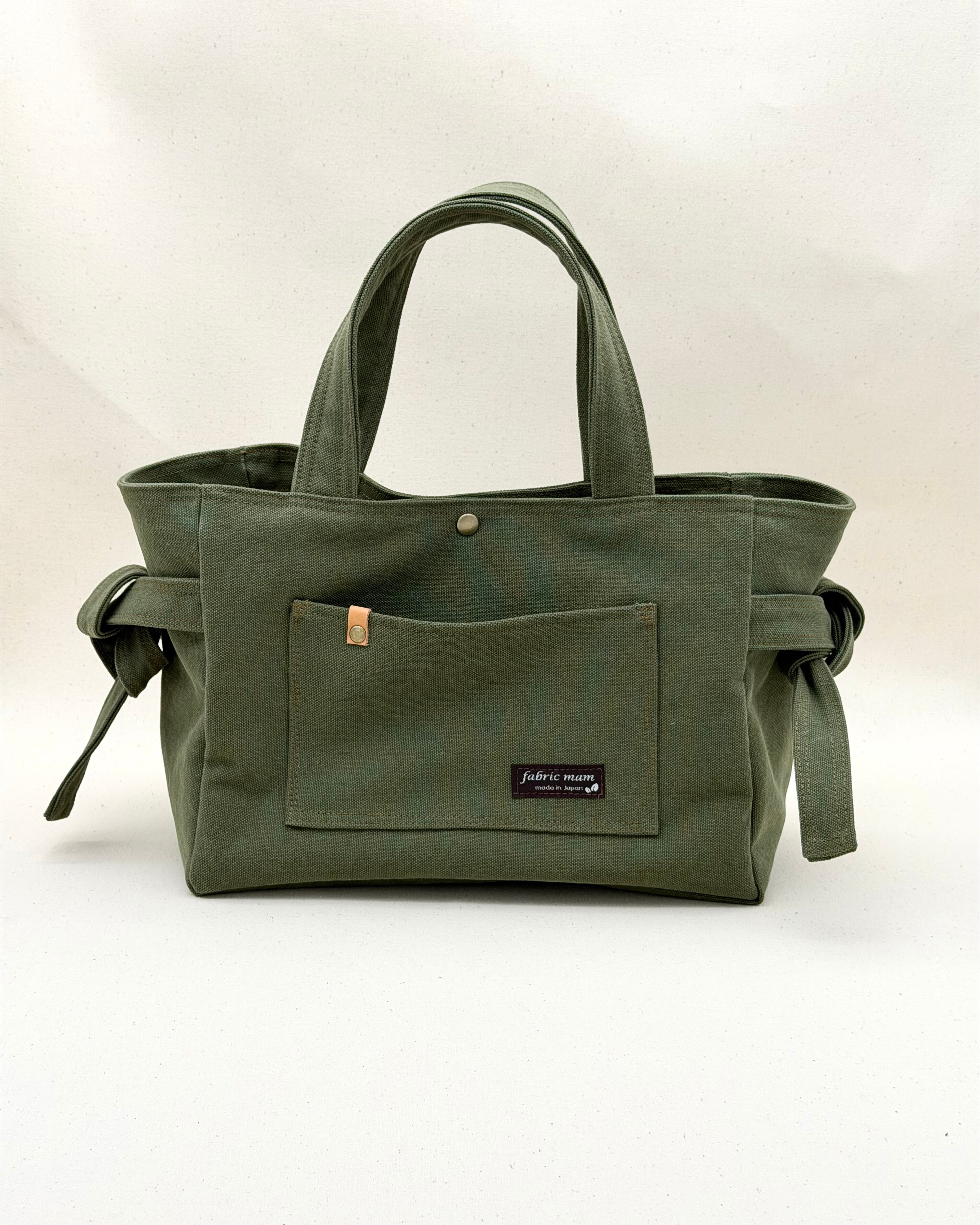 倉敷帆布で仕立てた リボントート|カーキ|自立・広マチ・見た目以上に入るトートバッグ