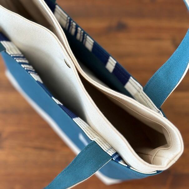 ▢外ポケットの内側はちらりとマルチボーダー生地をあしらっています。(画像3枚目参照)