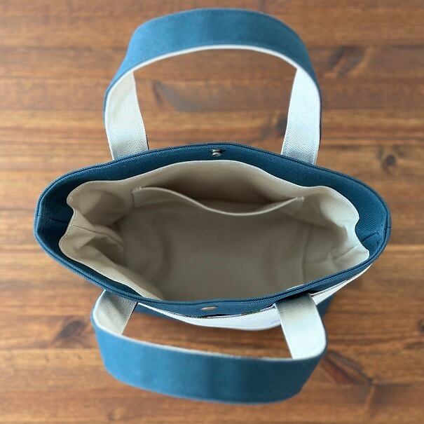 ▢内布付きでアイボリー色の11号帆布を使用しました。しっかりと仕立ててあります。自立します。