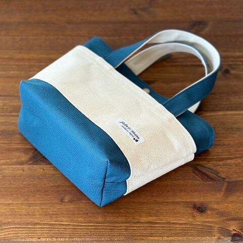<新作>しっかり帆布のミニトート*ミネラルブルー