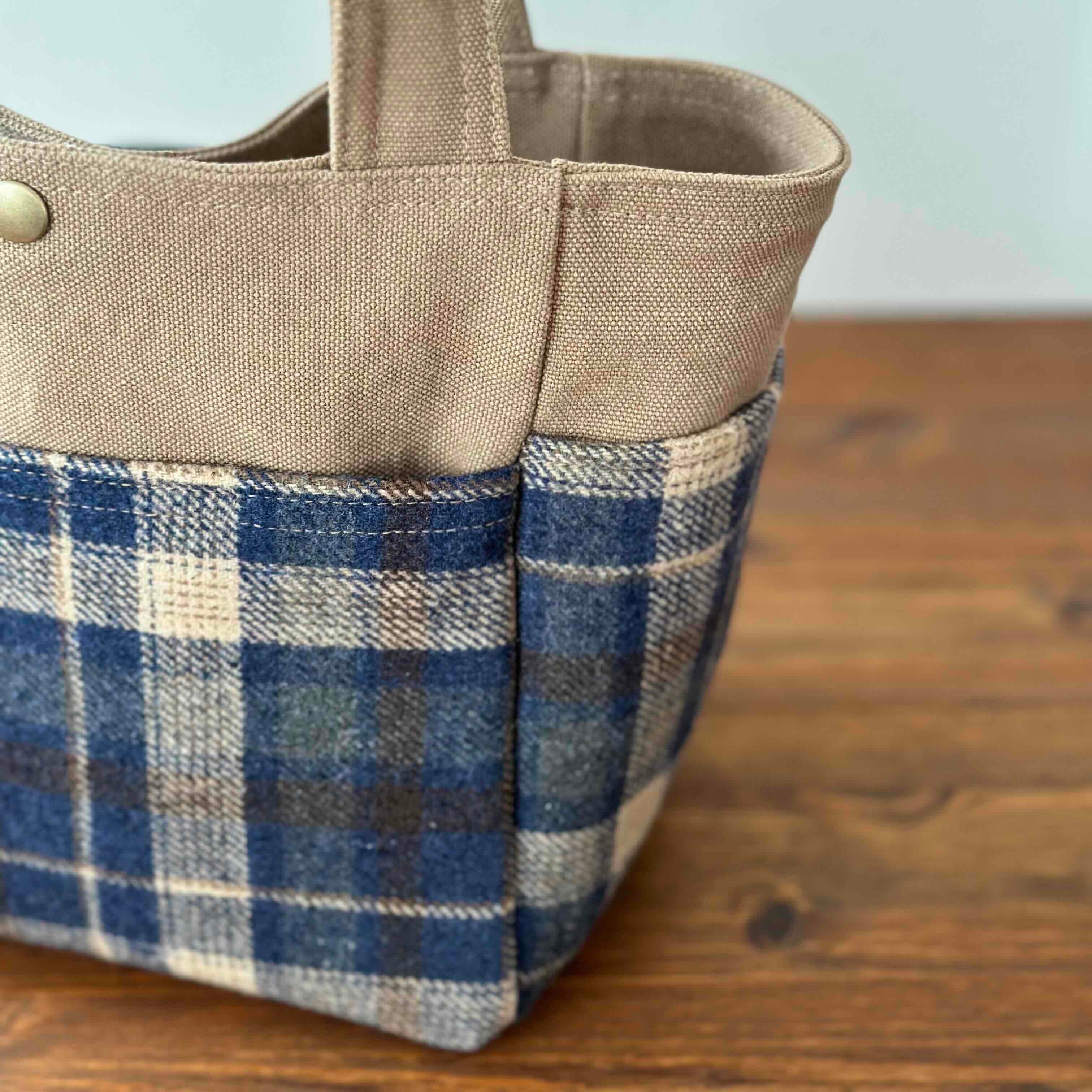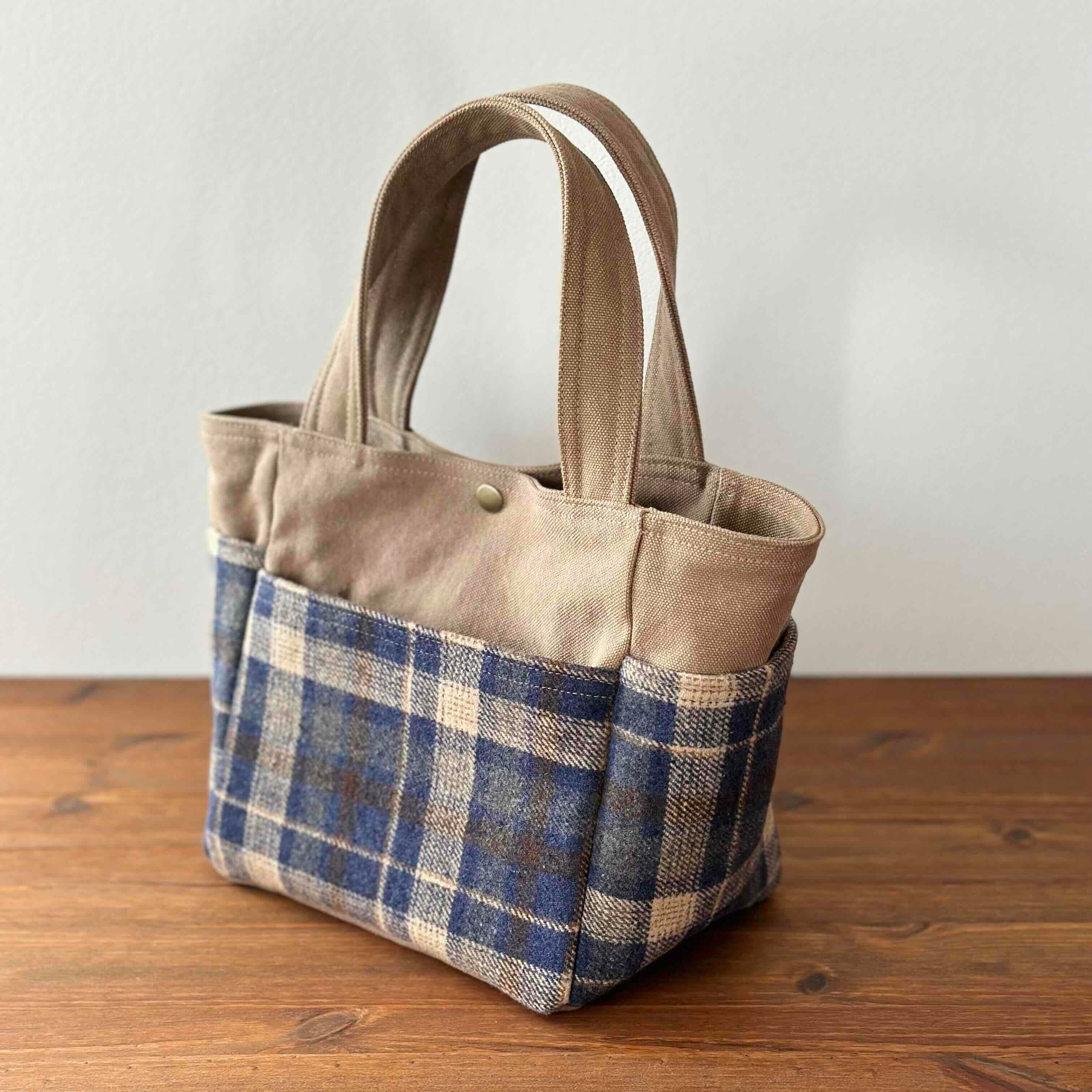◆丈夫な帆布と暖かいウールの組み合わせが魅力の「バイオウオッシュ帆布のぐるっとポケットトート(ミニ)グレージュ」。このミニサイズのポケットトートは、小物の収納に便利なアイテムです。グレージュカラーがシックで大人っぽさを演出し、どんなコーディネートにもマッチします。