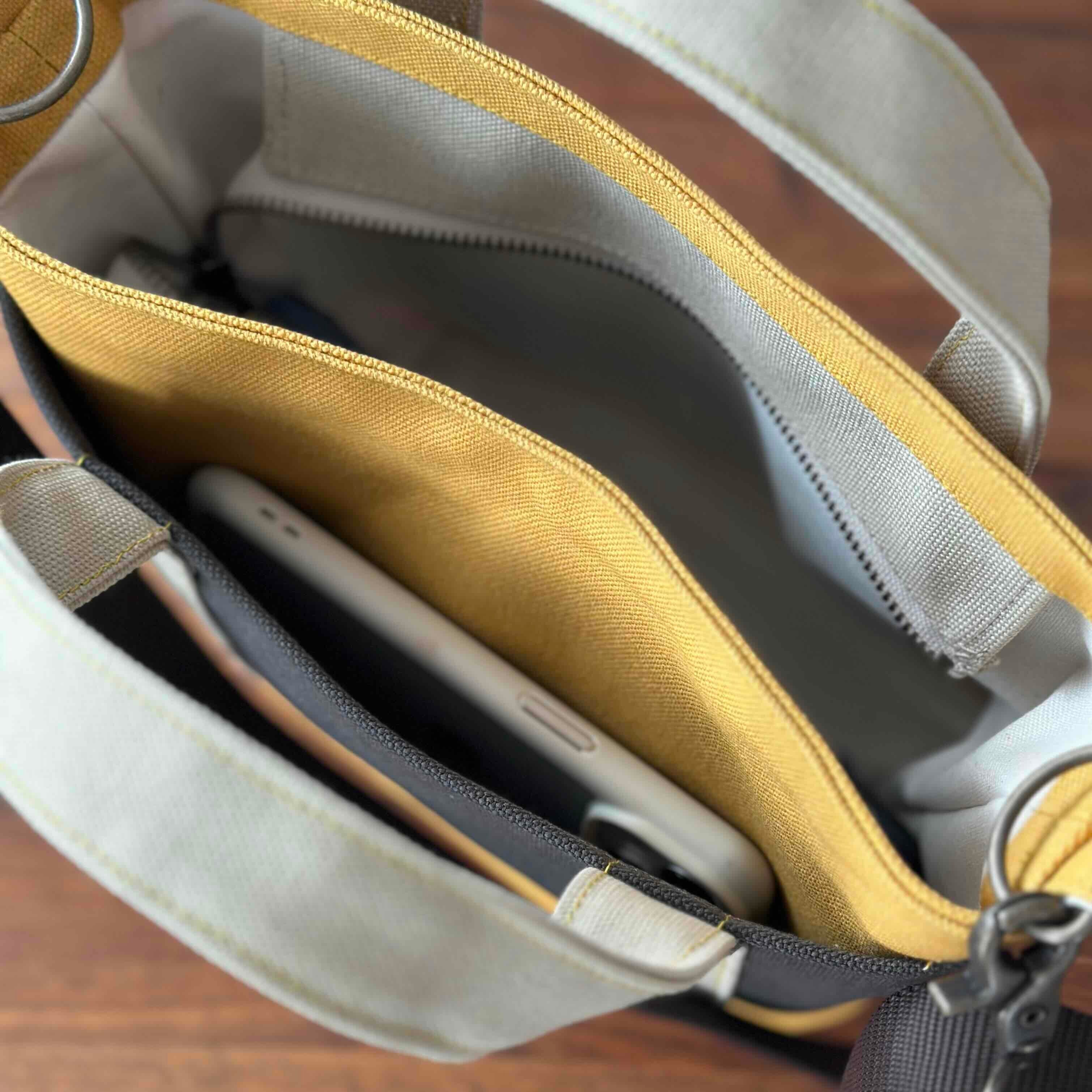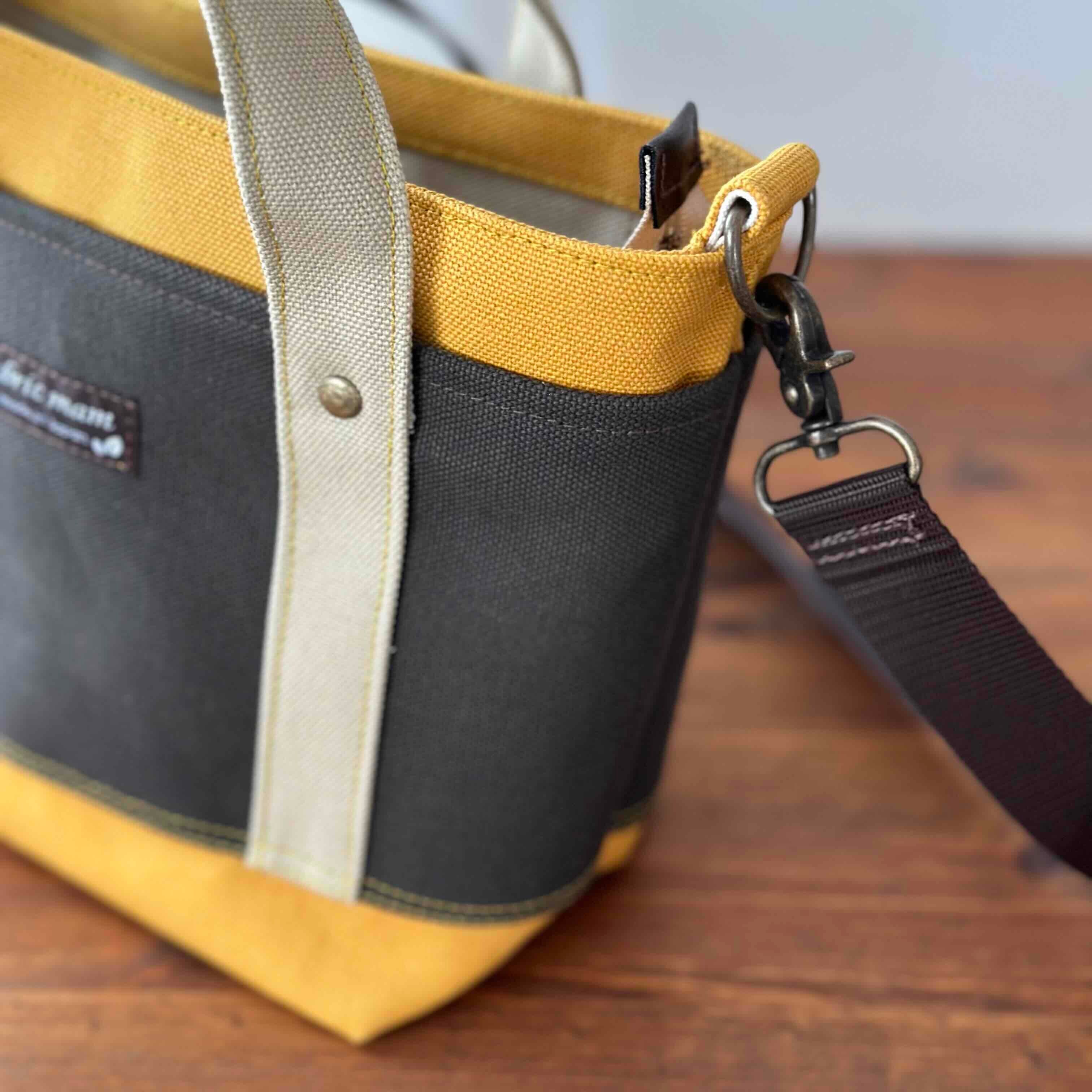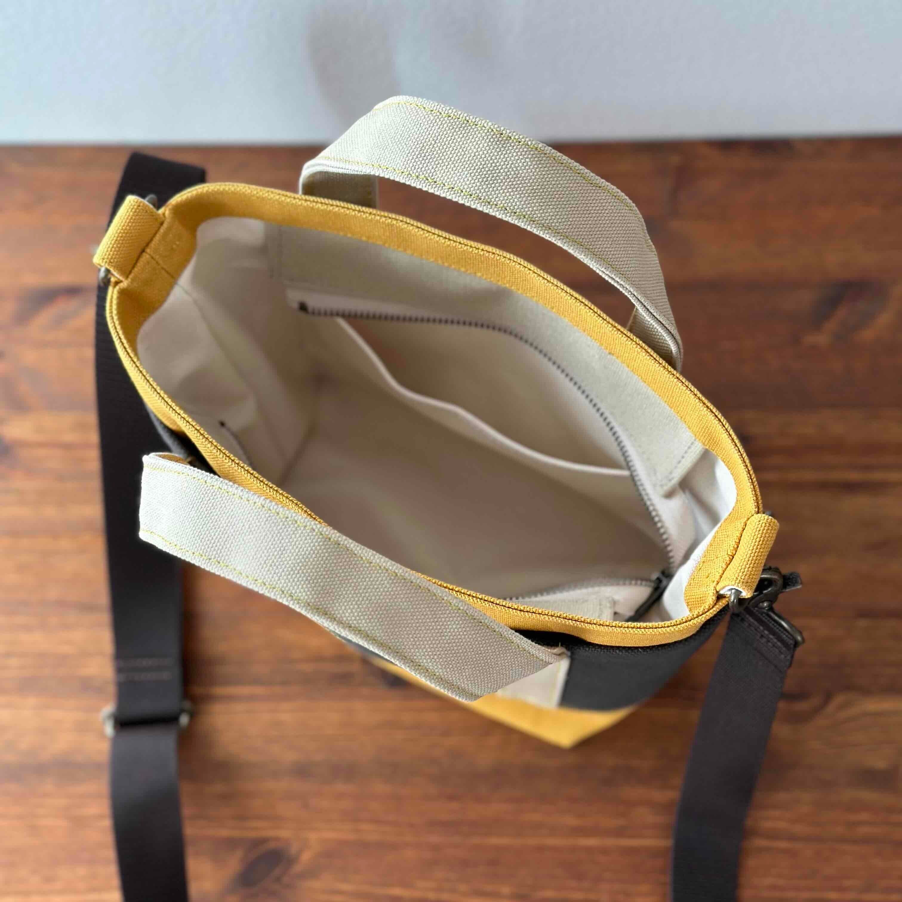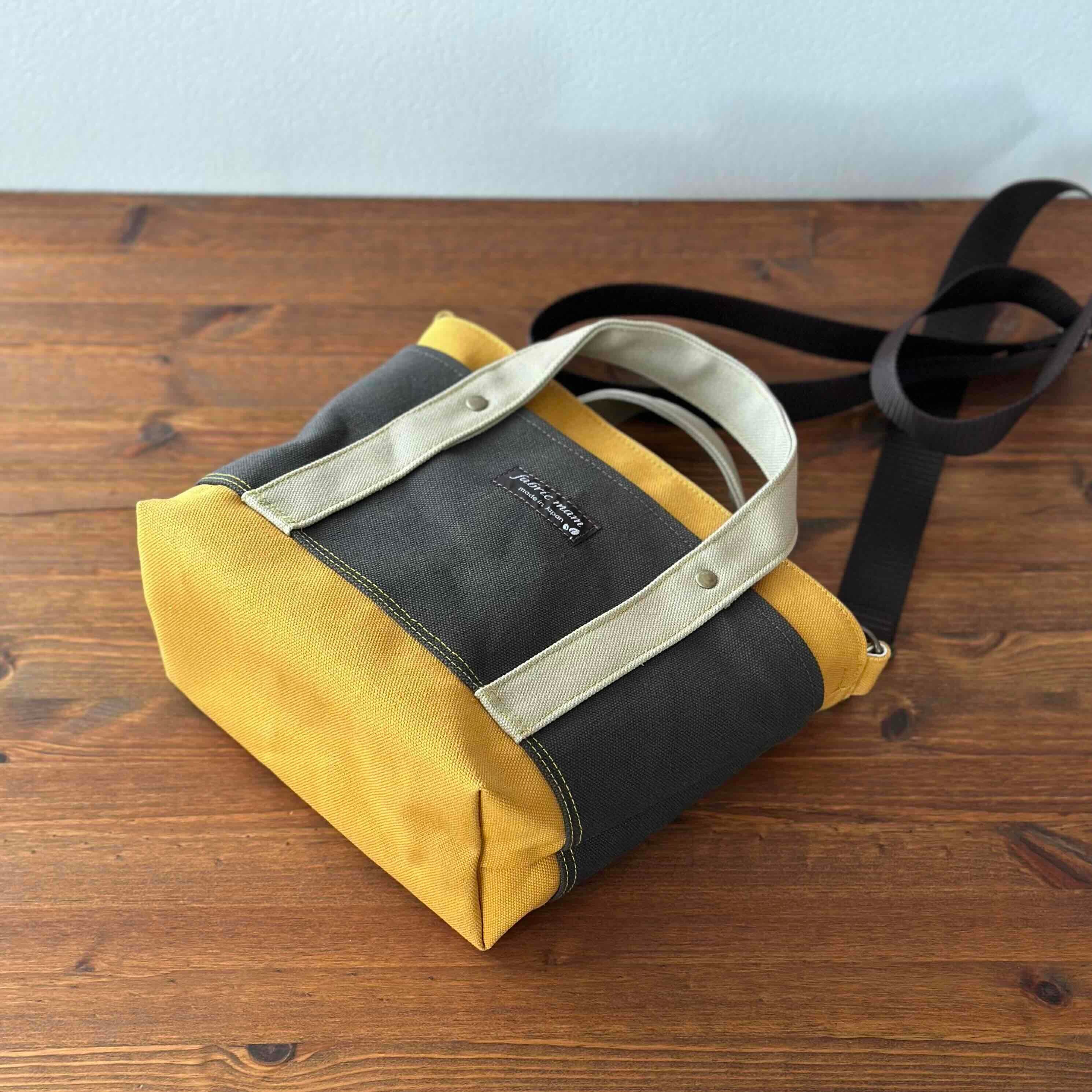 ◆軽くて丈夫な帆布素材で作られたミニショルダーバッグ、本体のマスタードとカーキグレー色に持ち手のベージュの色合いが大人素敵なアイテムです。コンパクトなサイズ感ながら、必要最低限の荷物が収納できる実用的なデザインです。長めのストラップで斜めがけやショルダーバッグとしてもお使いいただけます。キャンプやフェスなどのアウトドアイベントにもぴったりです。さまざまなスタイルに合わせておしゃれを楽しめるアイテムです。