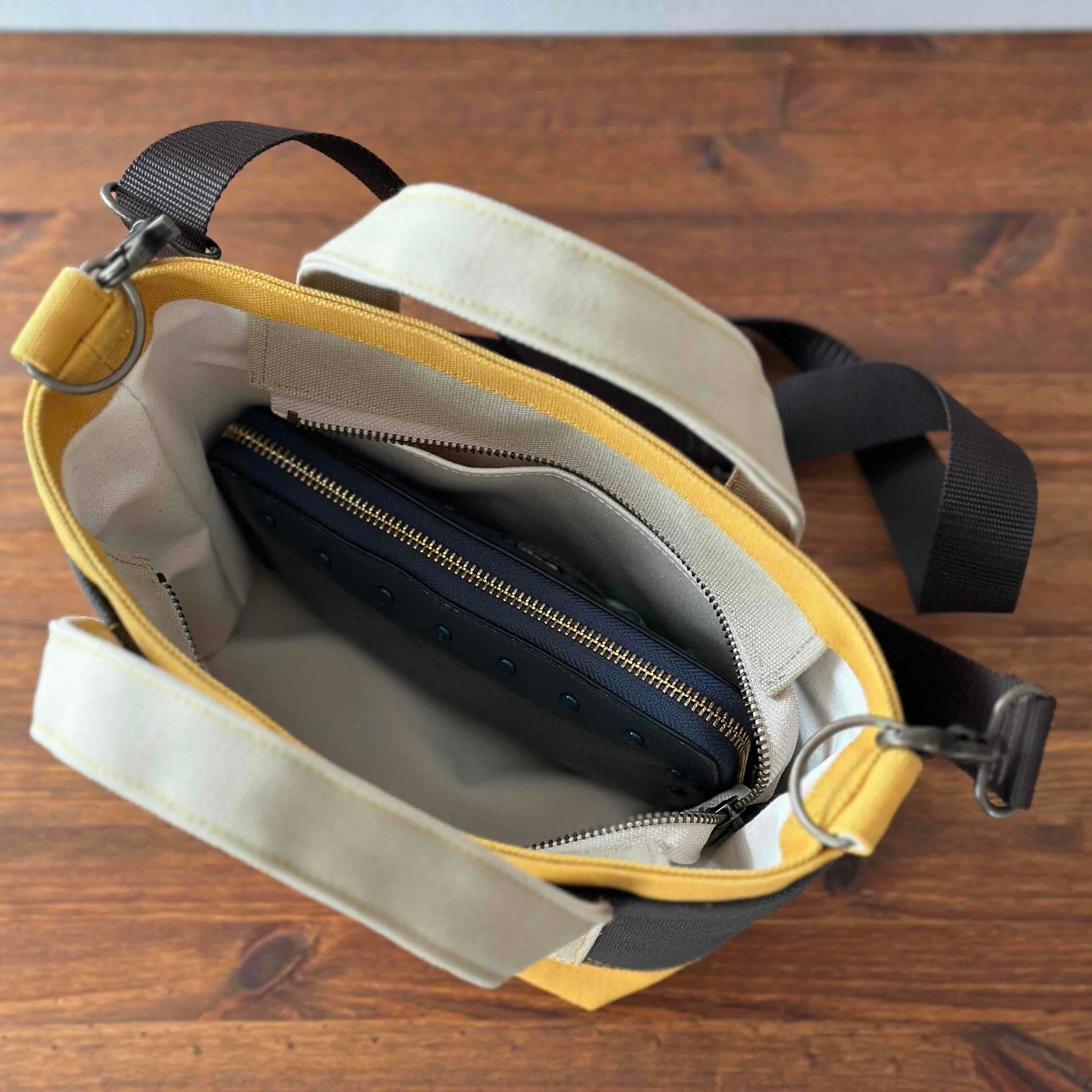 ◆内布にもしっかりとした11号帆布を使用しています。内ポケット一つお付けしました。お荷物を入れなくても自立します。