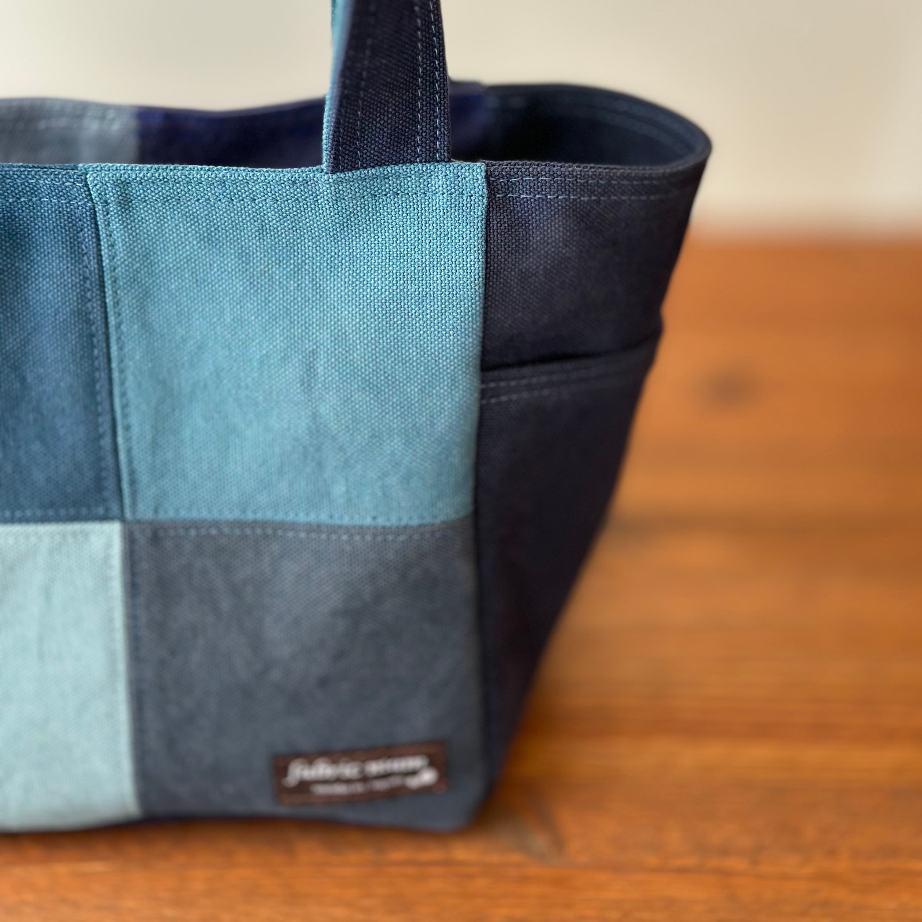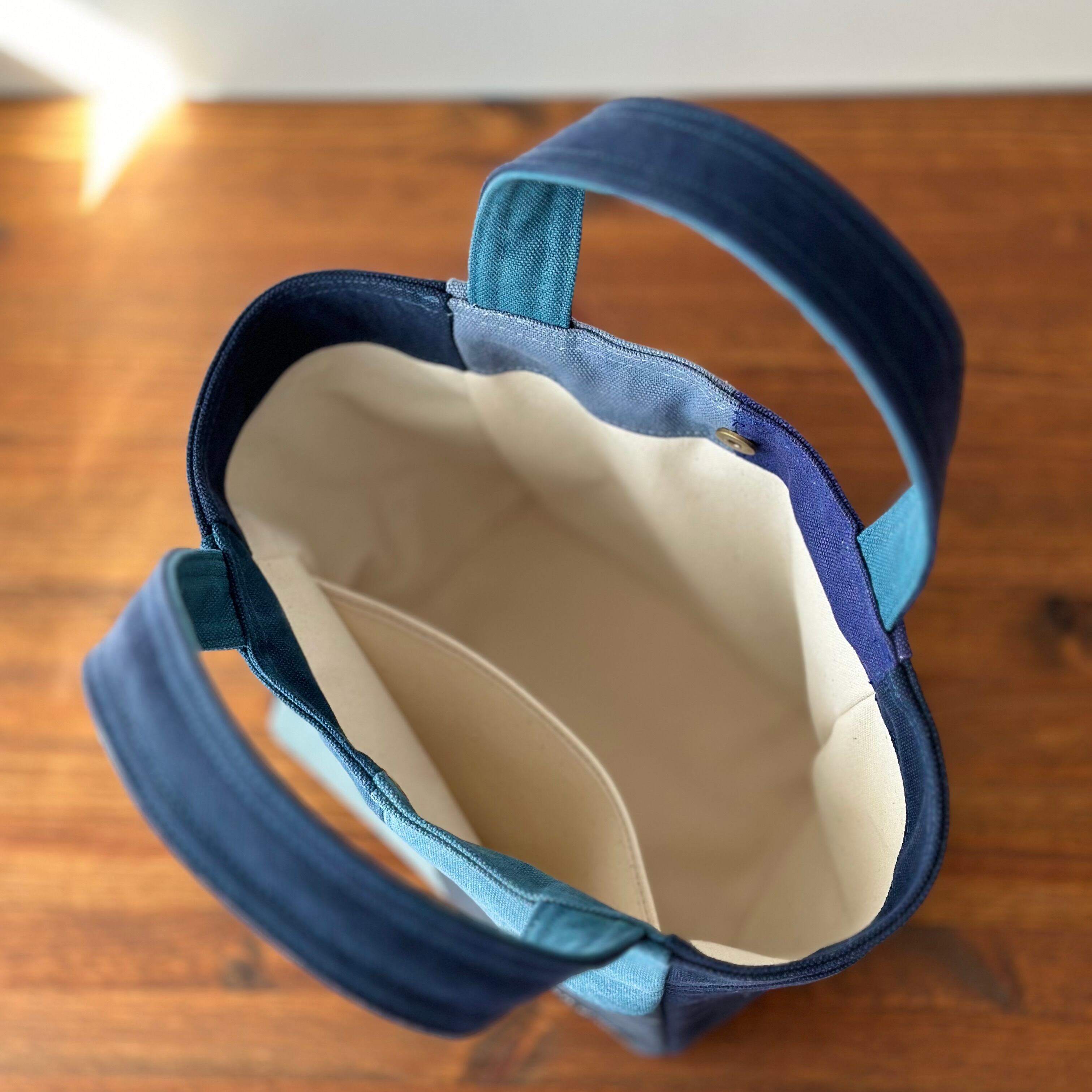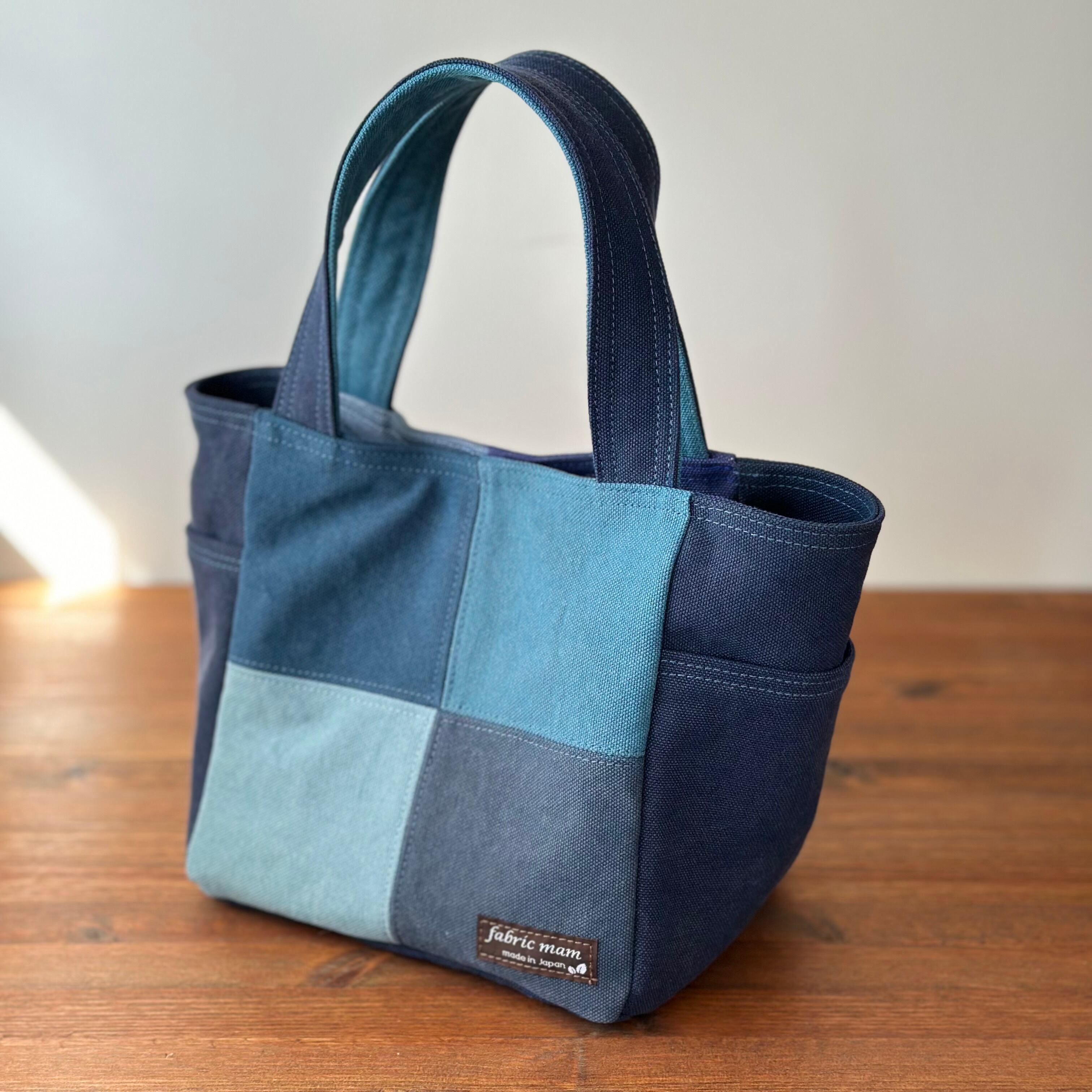 バイオウオッシュ帆布のパッチトート(ブルー)