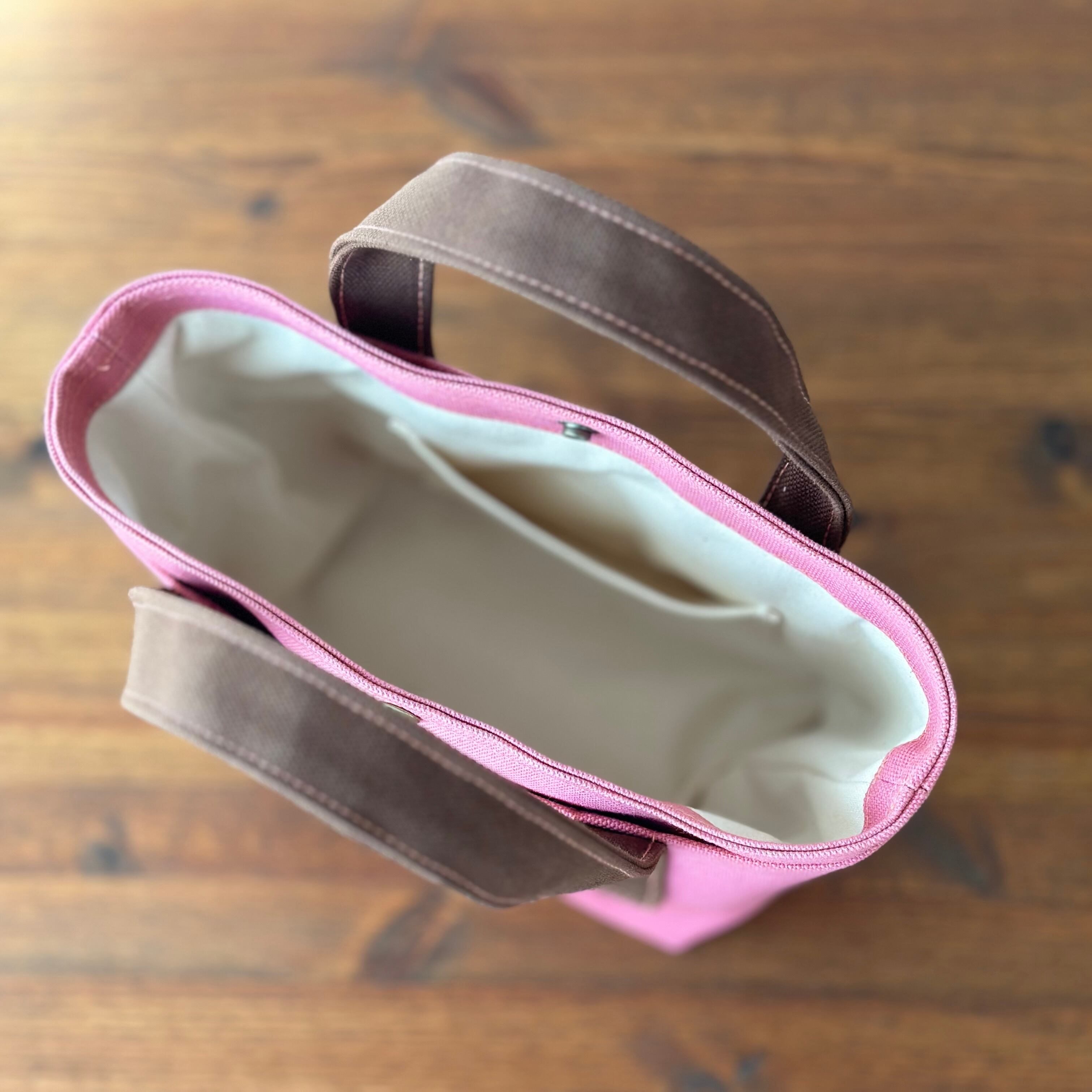 ◆軽量で丈夫な帆布素材を使用した可愛らしいミニトートバッグ。カメリアカラーがおしゃれで目を引きます。