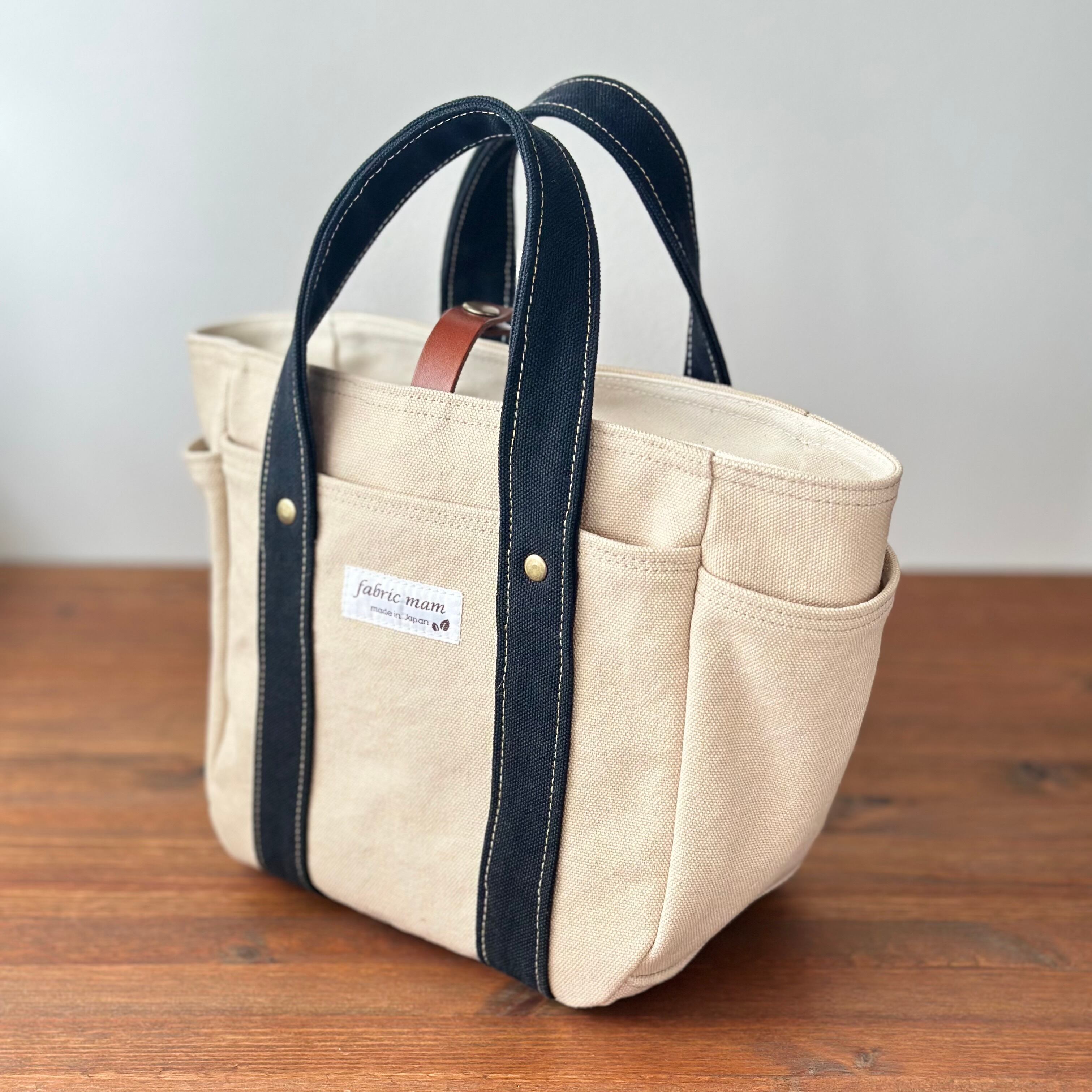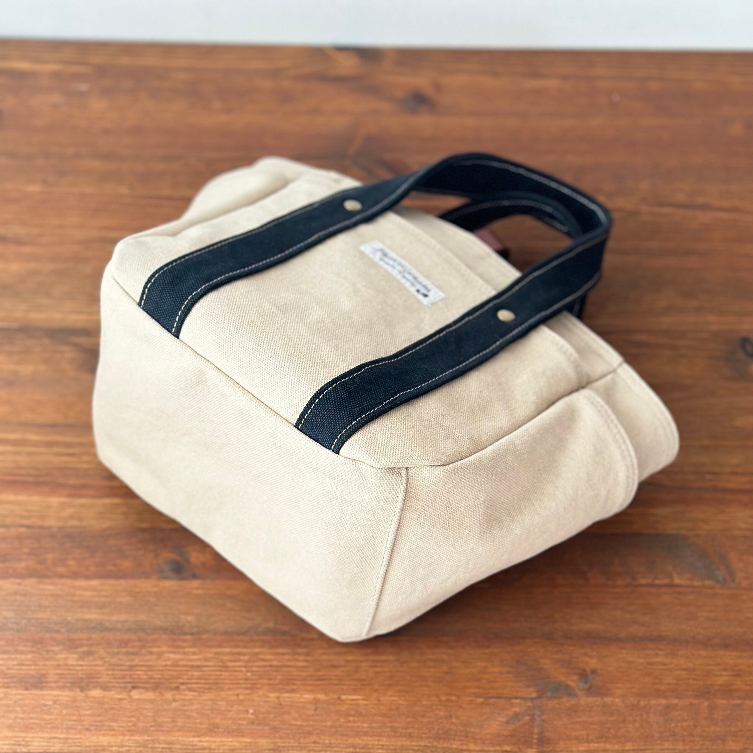 バイオウオッシュ帆布のトートバッグ(アイボリー×ブラック)