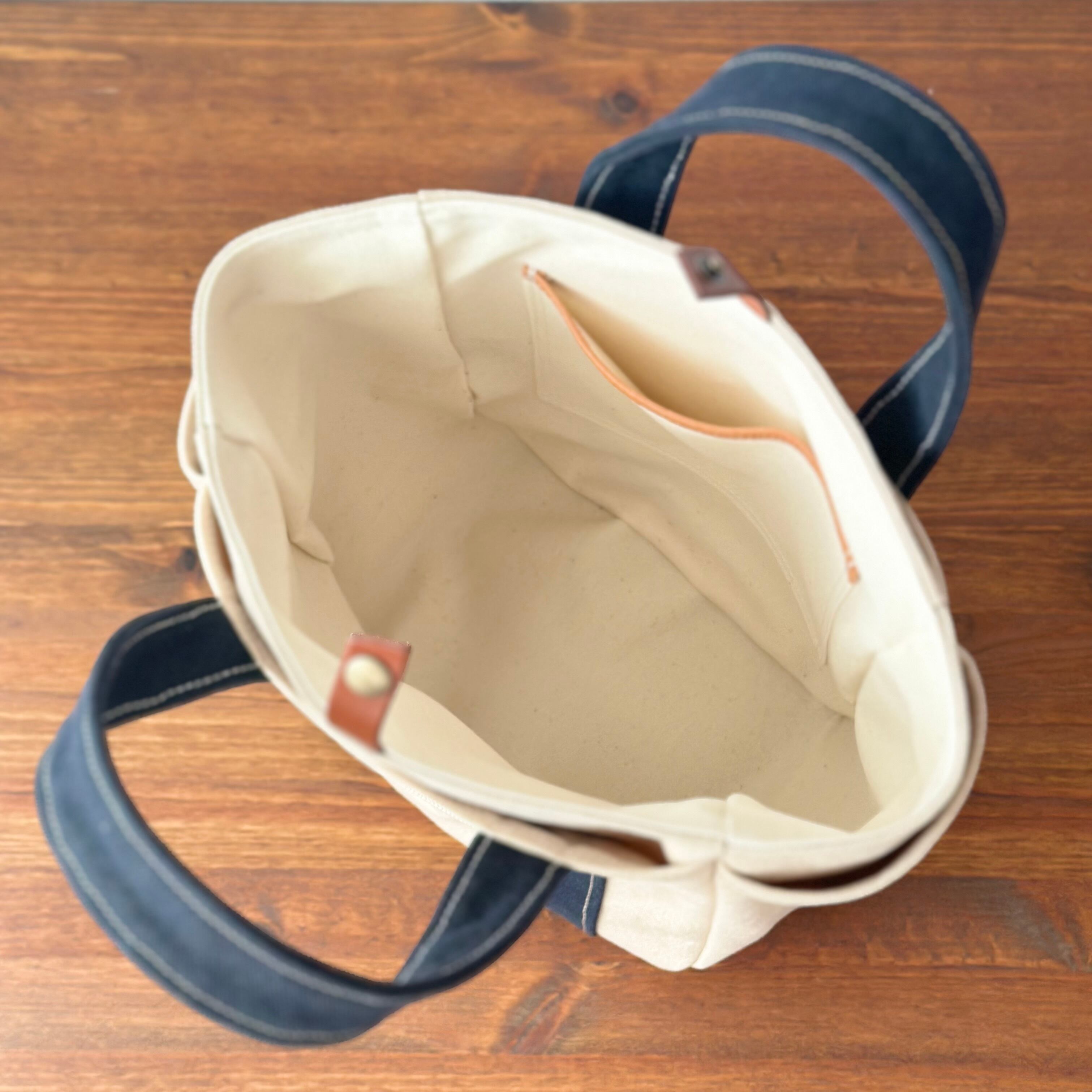 ◆内布付きで生成り色の11号帆布を使用しました。しっかりと仕立ててあります。自立します。