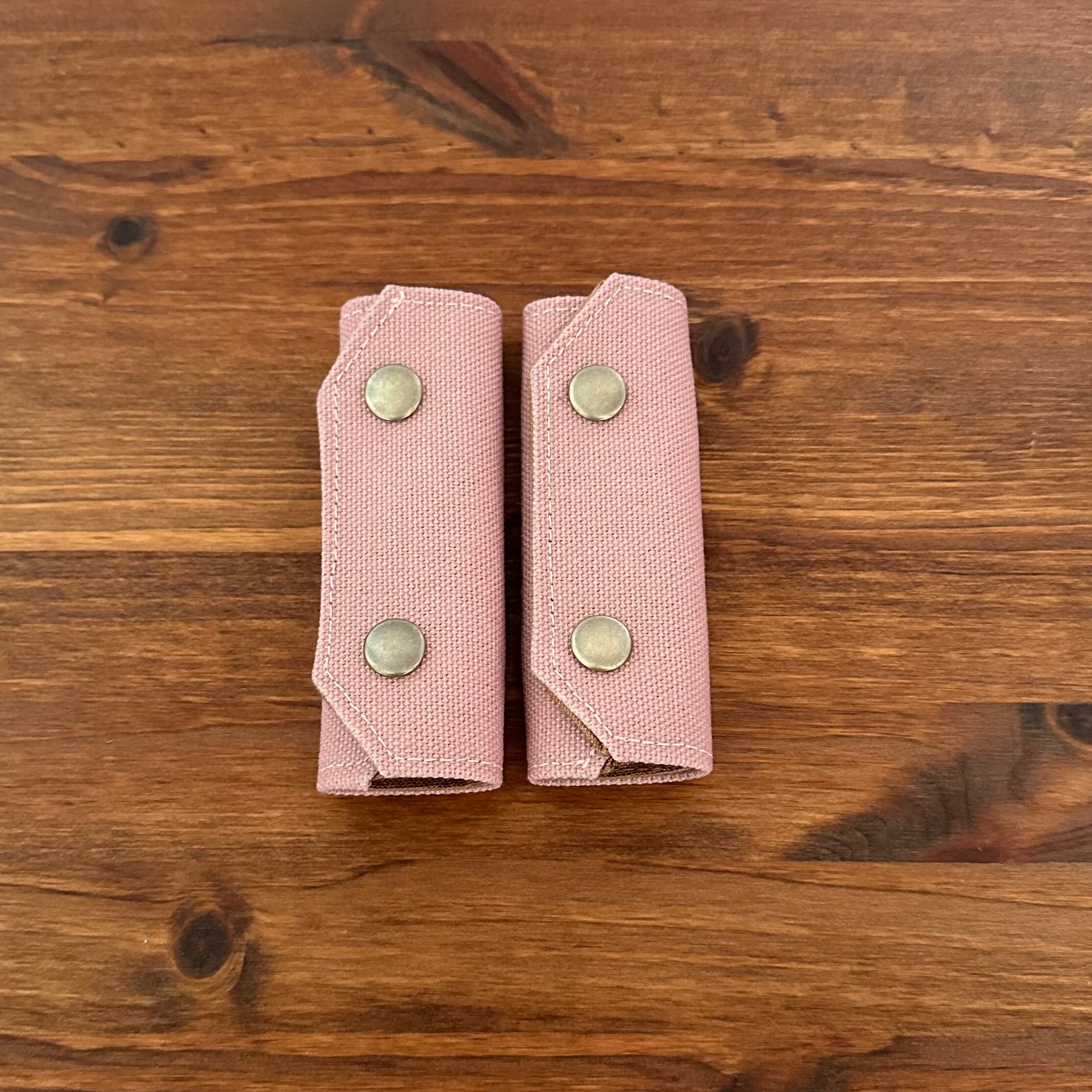 ▢持ち手1つずつにお取り付けいただける2枚セットとなっていますので、バッグの中身を取り出すたびごとにハンドルカバーを取り外ししていただく必要はございません。一度お取り付けしていただきましたらそのままずっとお使いいただけます。